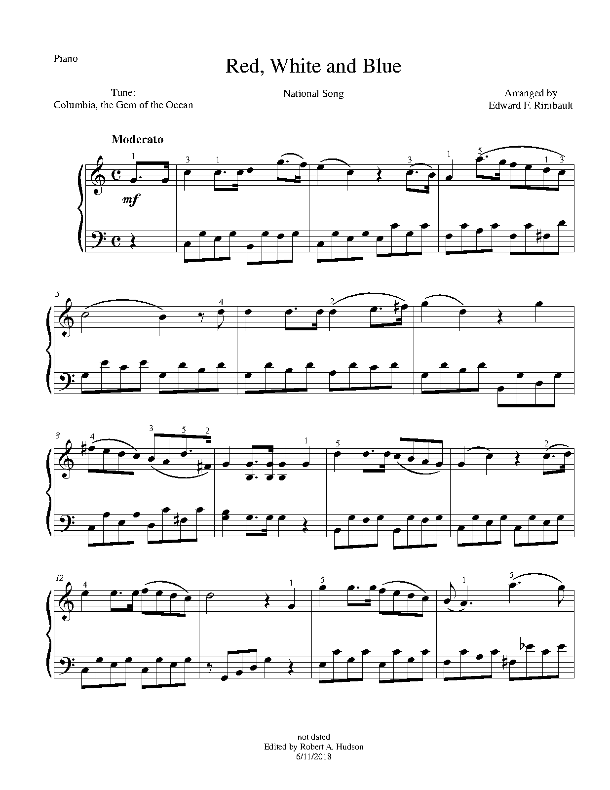 | Related Works | The tune is taken from "Columbia, The Gem Of the Ocean", which itself is identical to Britannia the Gem of the Ocean (Shaw, David Taylor), though according to the Wikipedia article, it is uncertain which one was adapted from the other. |