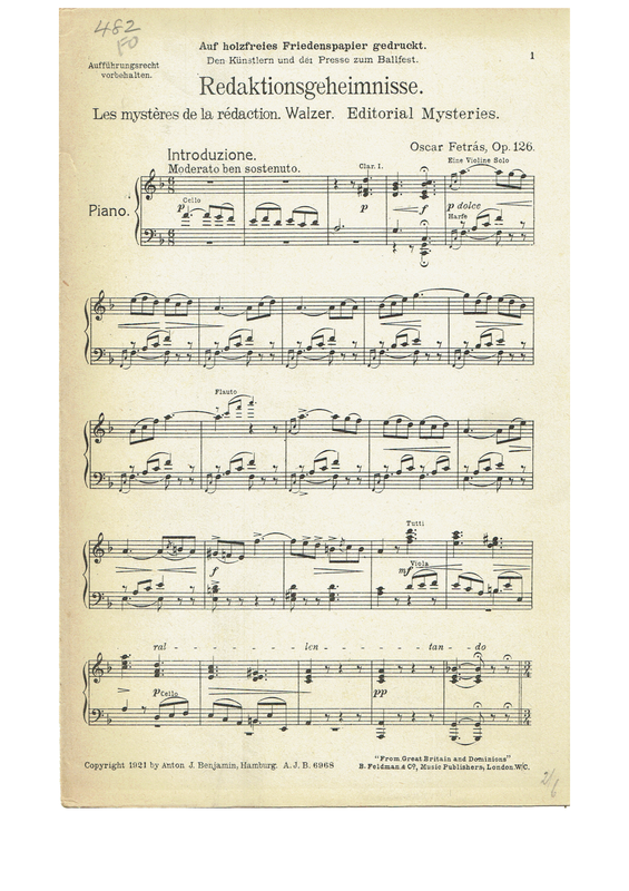 | Dedication | Den Künstlern und der Presse zum Ballfest am 14. Febr. 1903 |