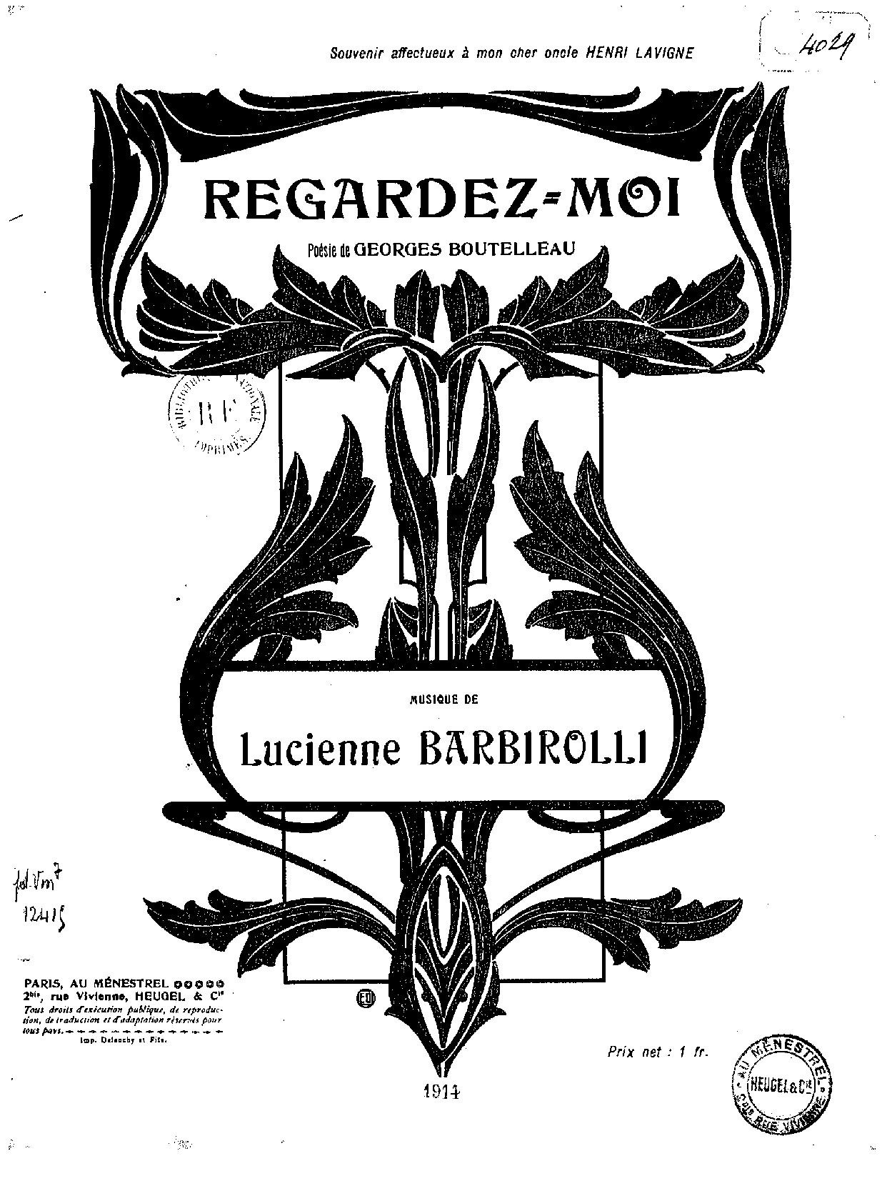 | Dedication | Souvenir affectueux à mon cher oncle Henri Lavigne |