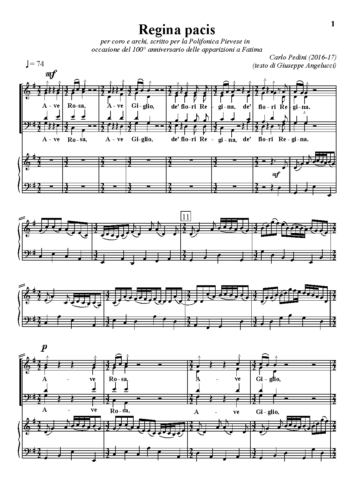 Written for the "Polifonica Pievese" on the occasion of the 100th anniversary of the Marian apparitions at Fatima, for the Shrine in Città della Pieve