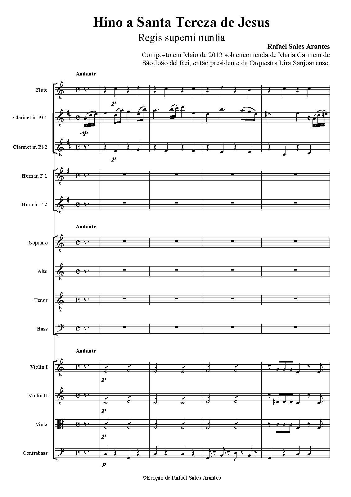 | Dedication | Ordering Maria Carmem, São João del Rei, then president of the Orchestra Lira Sanjoanense. |