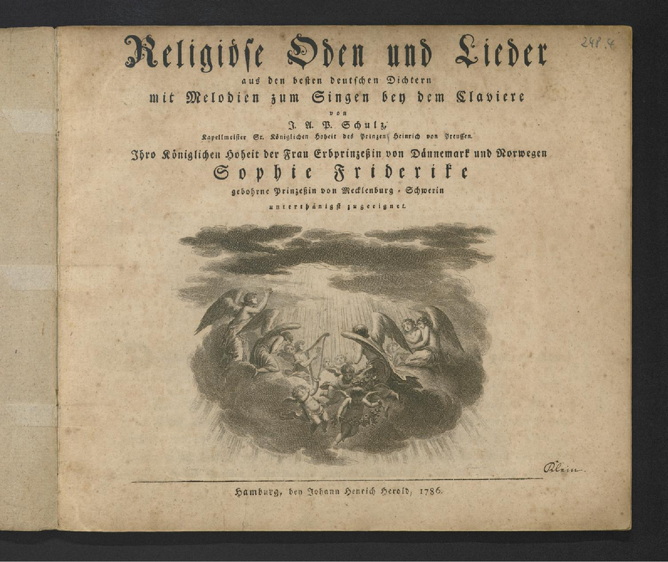 | Alternative. Title | Religiöse Oden und Lieder aus den besten deutschen Dichtern mit Melodien zum Singen bey dem Claviere |