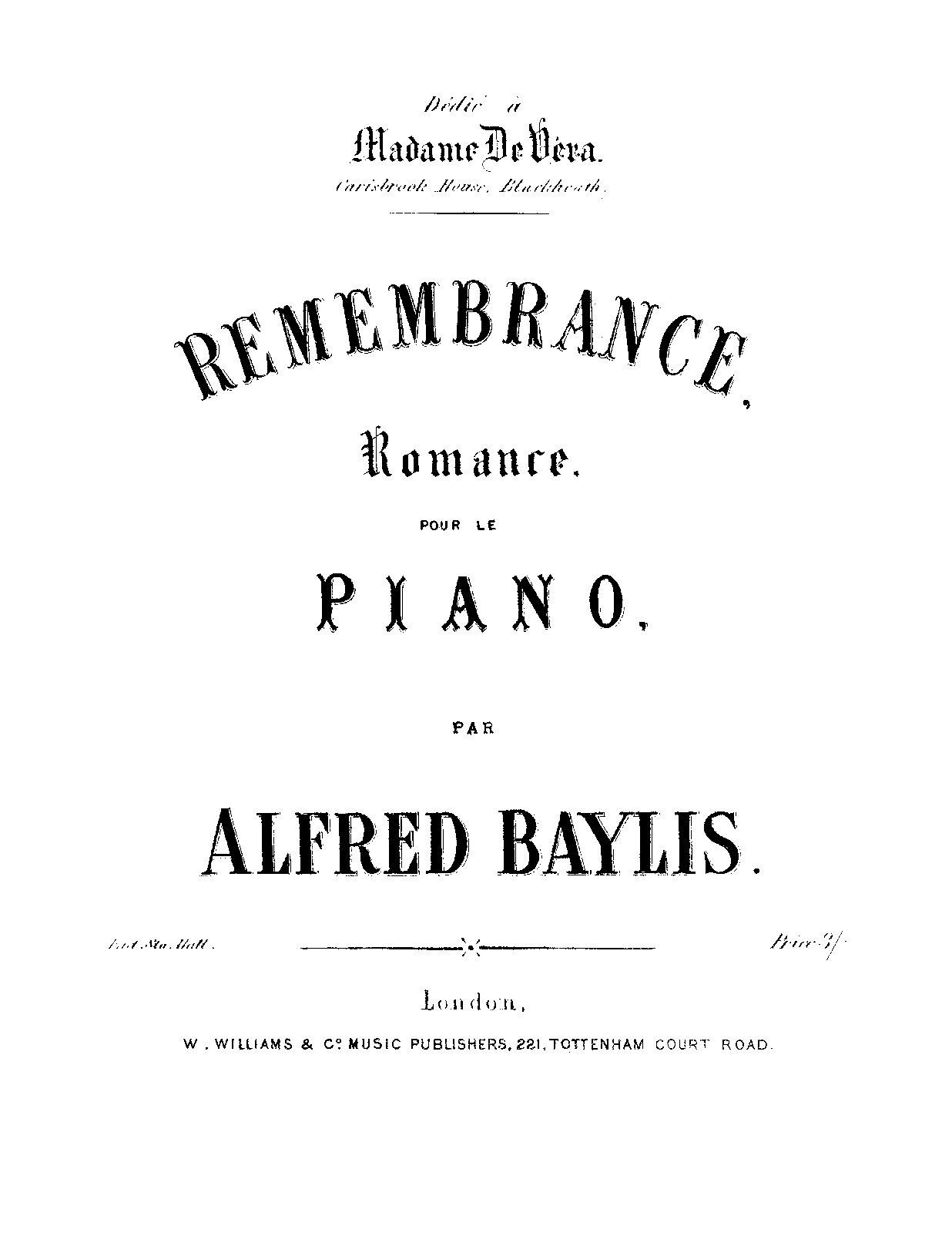 | Dedication | dedie a Madame de Vera, Carisbrook House, Blackheath |