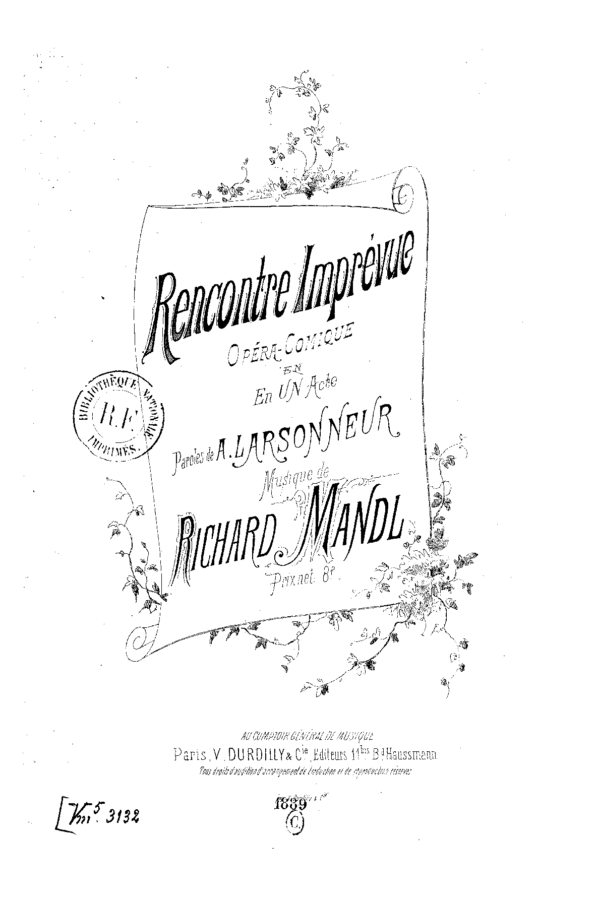 | Copyright Information | Publication noted in the Bibliographie de la France : 78e année, 2e série, Nº 16, 20 Avril 1889, p.269, reg.1682 (vocal score). |