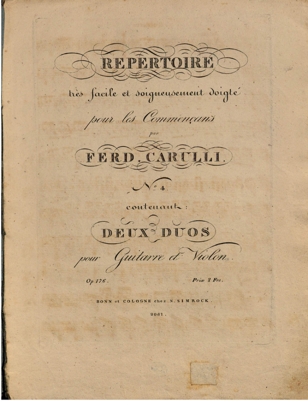 | Alternative. Title | Repetoire des Commençans très facile et soigneusement doigté pour Guitare et Violon No.4 |