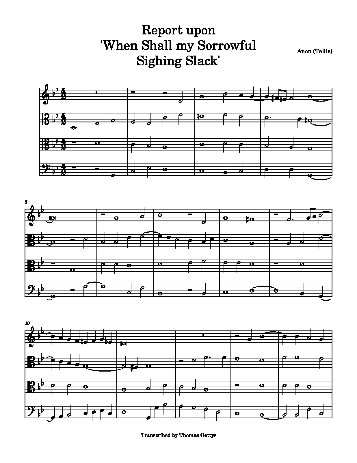 | Work Title | Report upon 'When shall my sorrowful sighing slack' |