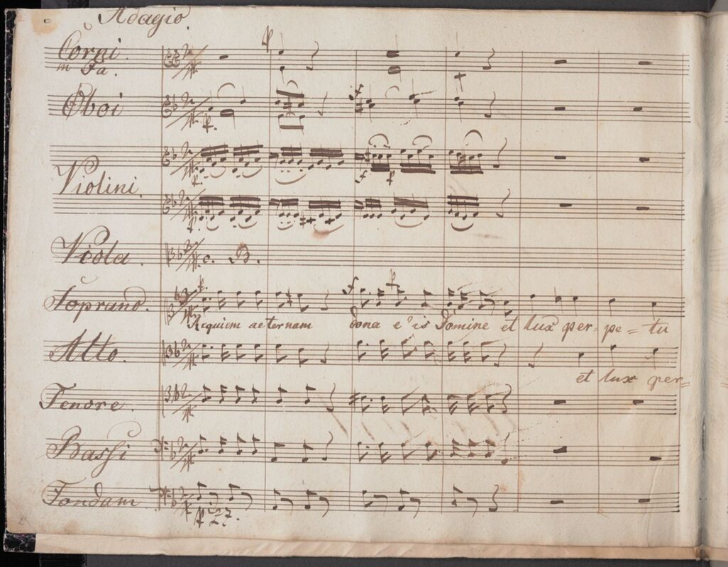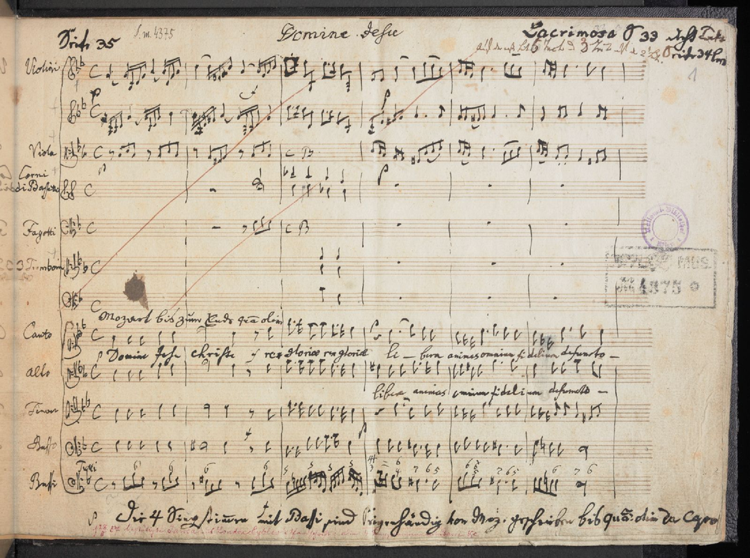 An Amen fugue, found on a sketch leaf along with a sketch for Rex tremendae (No.3c), was almost certainly intended as a final part of the Sequentia (No.3).