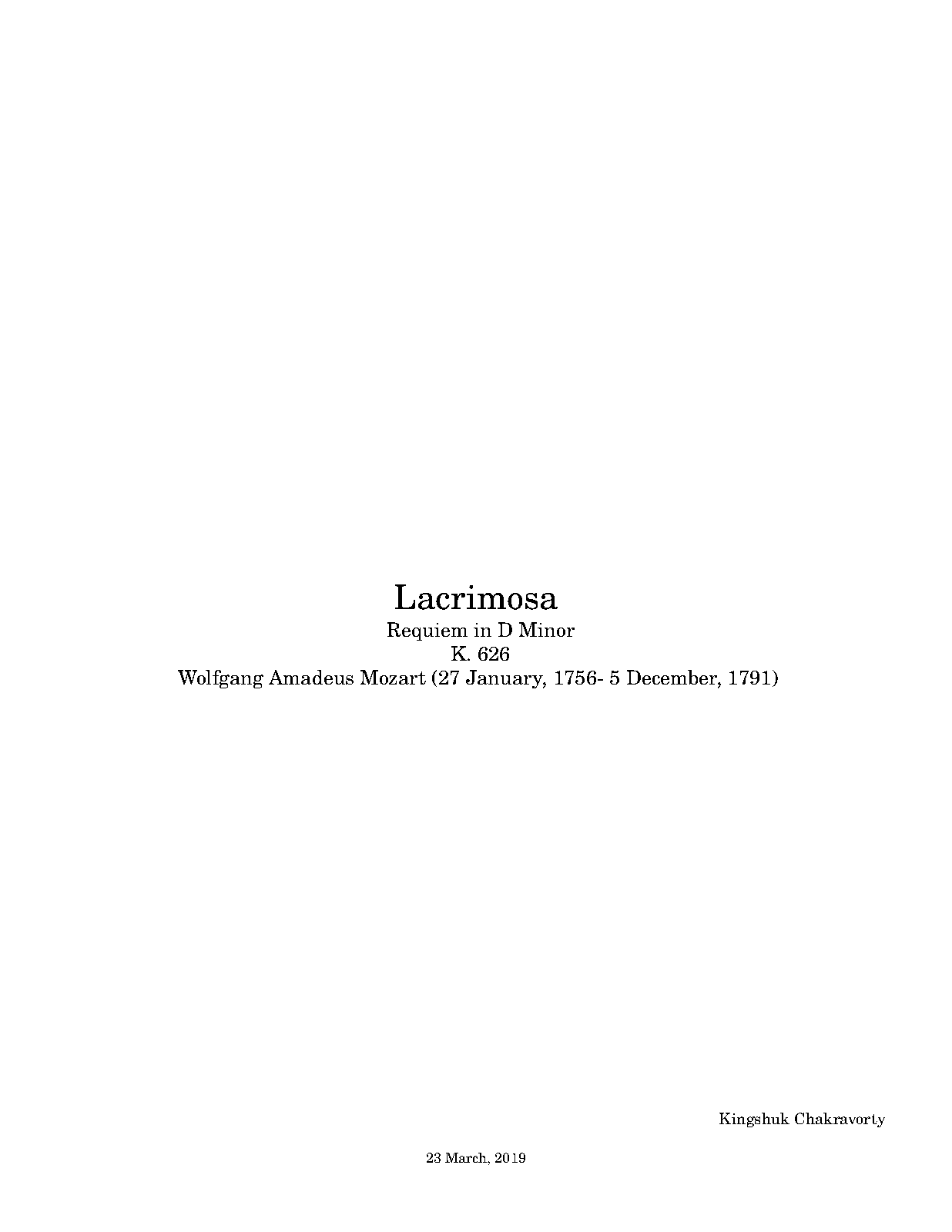 莫扎特D小调安魂弥撒曲; KV 626; Requiem Mozarta; K. 626; Requiem K626; רקוויאם של מוצרט; Misa n º 18; Requiem en re menor; Misa n. 18; K 626; Misa n 18; Réquiem de Mozart; Misa n 19; Lacrimosa; Misa de requiem en re menor; Misa n º 19; Misa n. 19; Requiem di Mozart; Messa di Requiem; Mozart Requiem; モツレク; Mozart-Requiem lyric; Mozarts Requiem; Реквием Моцарта; Re Minör Requiem; Requiem Mass in D minor; Rèquiem de Mozart; Rèquiem K. 626; El Rèquiem de Mozart; Requiem mozart; El Requiem de Mozart; Mozartin requiem; Requiem d-molli, KV 626; Requiem d-molli; Rekvijem; Wolfgang Amadeus Mozart: Rekvijem; Mozart's Requiem; Rekviema Meso en D-minoro; Requiem in re minore; Requiem ta' Mozart; Ρέκβιεμ σε Ρε ελάσσονα; Κ. 626