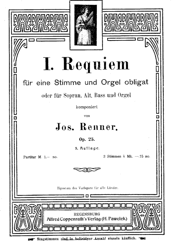 | Alternative. Title | I Missa pro defunctis (F) f. 1 Singst. u. Org. obl. od. S., A., B. u. Org. |