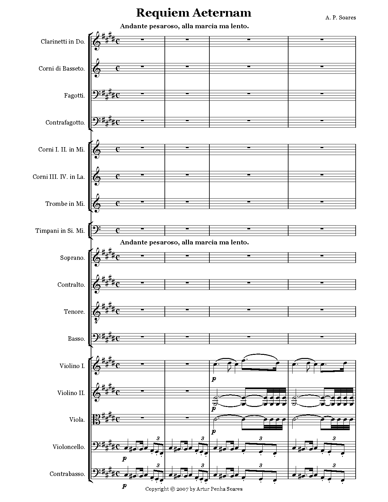 Instrumentation SATB chorus, 2 clarinets, 2 basset horns, 2 bassoons, contrabasson, 4 horns (E and A), 2 trumpets (E), timpani, strings