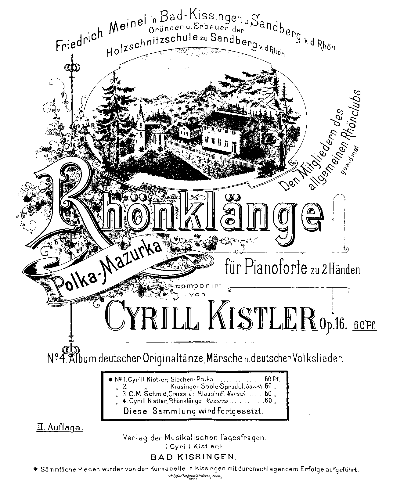 When issued by the composer in its second edition in 1891 it was included with three other works under the collective title Erinnerung an Kissingen. 4 Musikstücke für Pianoforte. (Monatsbericht (1891), p.467).