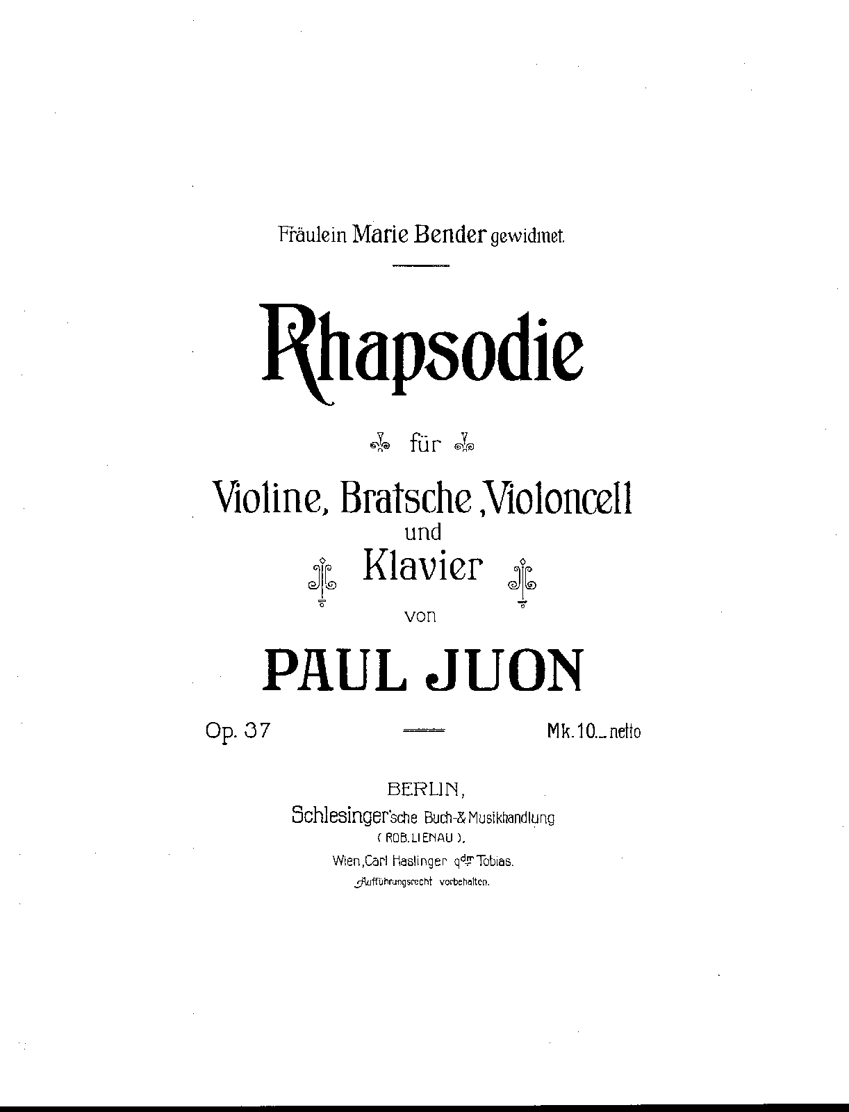 | Dedication | Fräulein Marie Bender gewidmet |