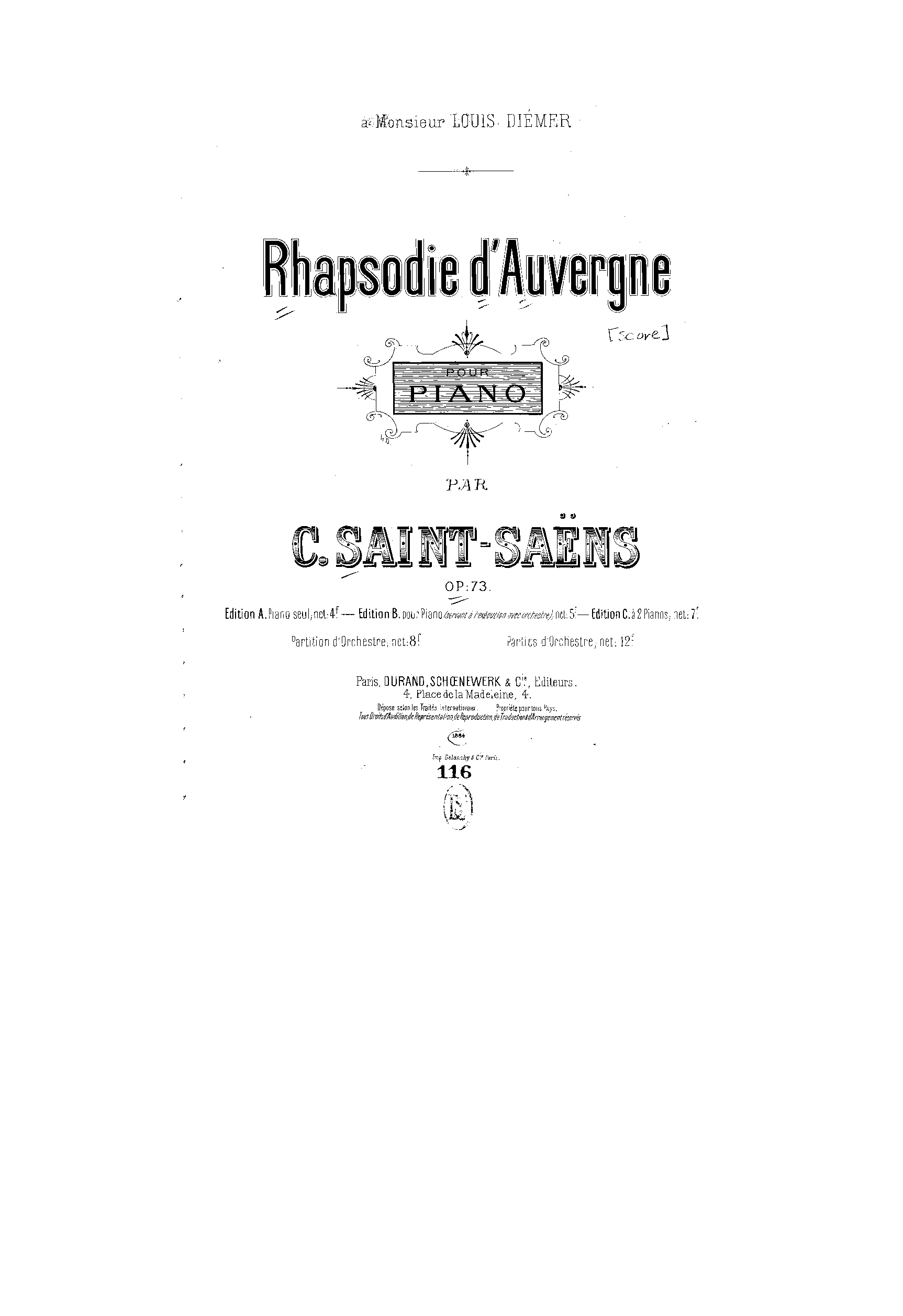 | Genre Categories | Rhapsodies; For piano, orchestra; Scores featuring the piano; |