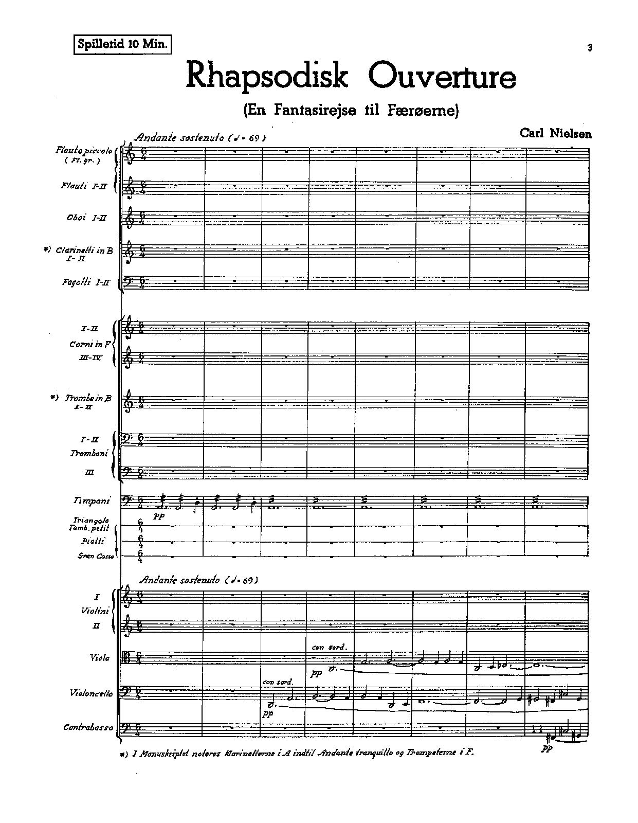 | Extra Information | The Royal Theatre commissioned Nielsen to compose music for a gala concert celebrating a visit from the Faroe Islands. Originally, the concert was planned to take place in January 1927, but the event was postponed until November. Nielsen waited with the completion of the music, and the score was first finished on 6 November. |