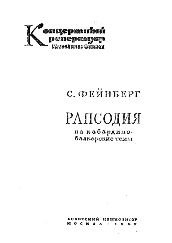 Moscow: Sovyetsky Kompozitor, 1962. Plate c 3062 к.