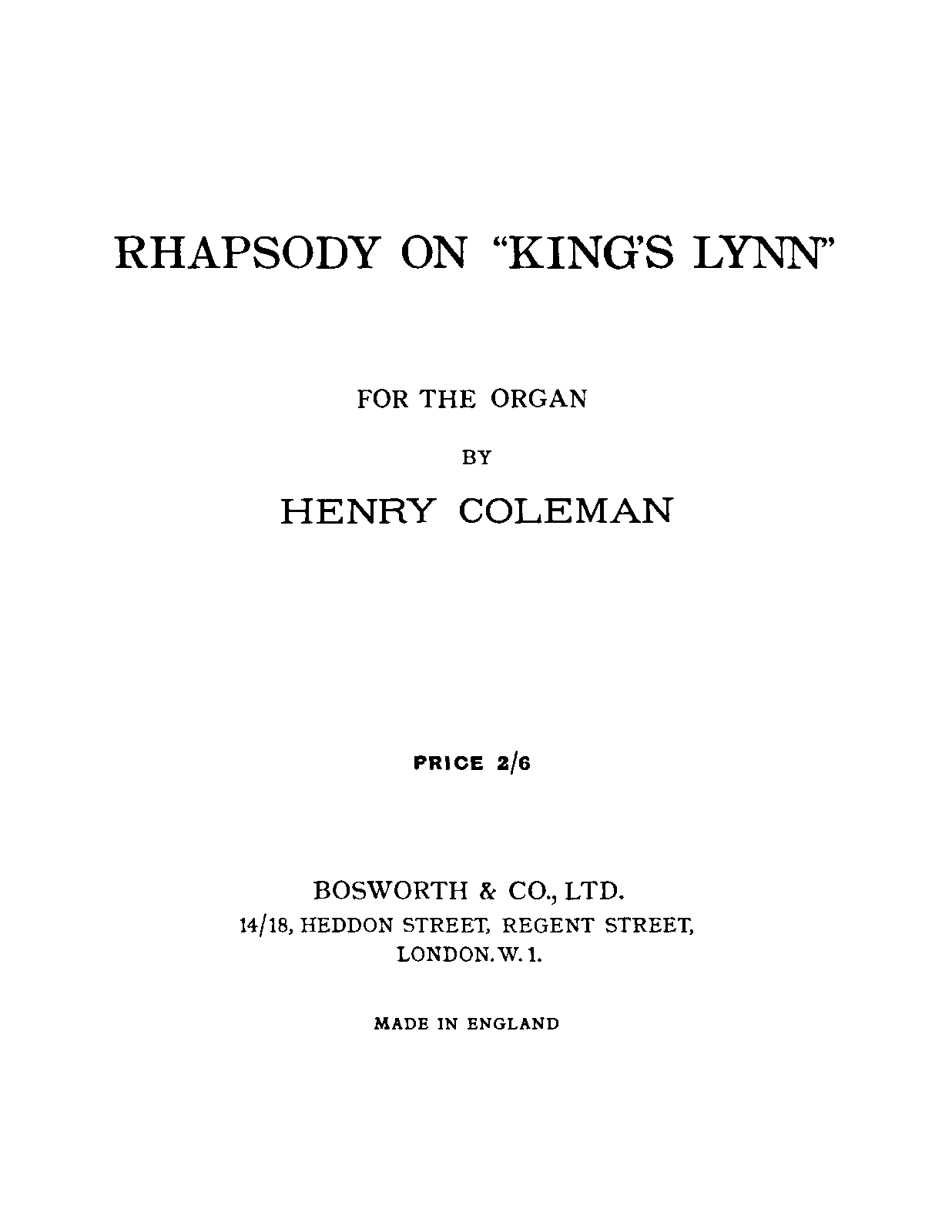 | Genre Categories | Rhapsodies; For organ; Scores featuring the organ; For 1 player |