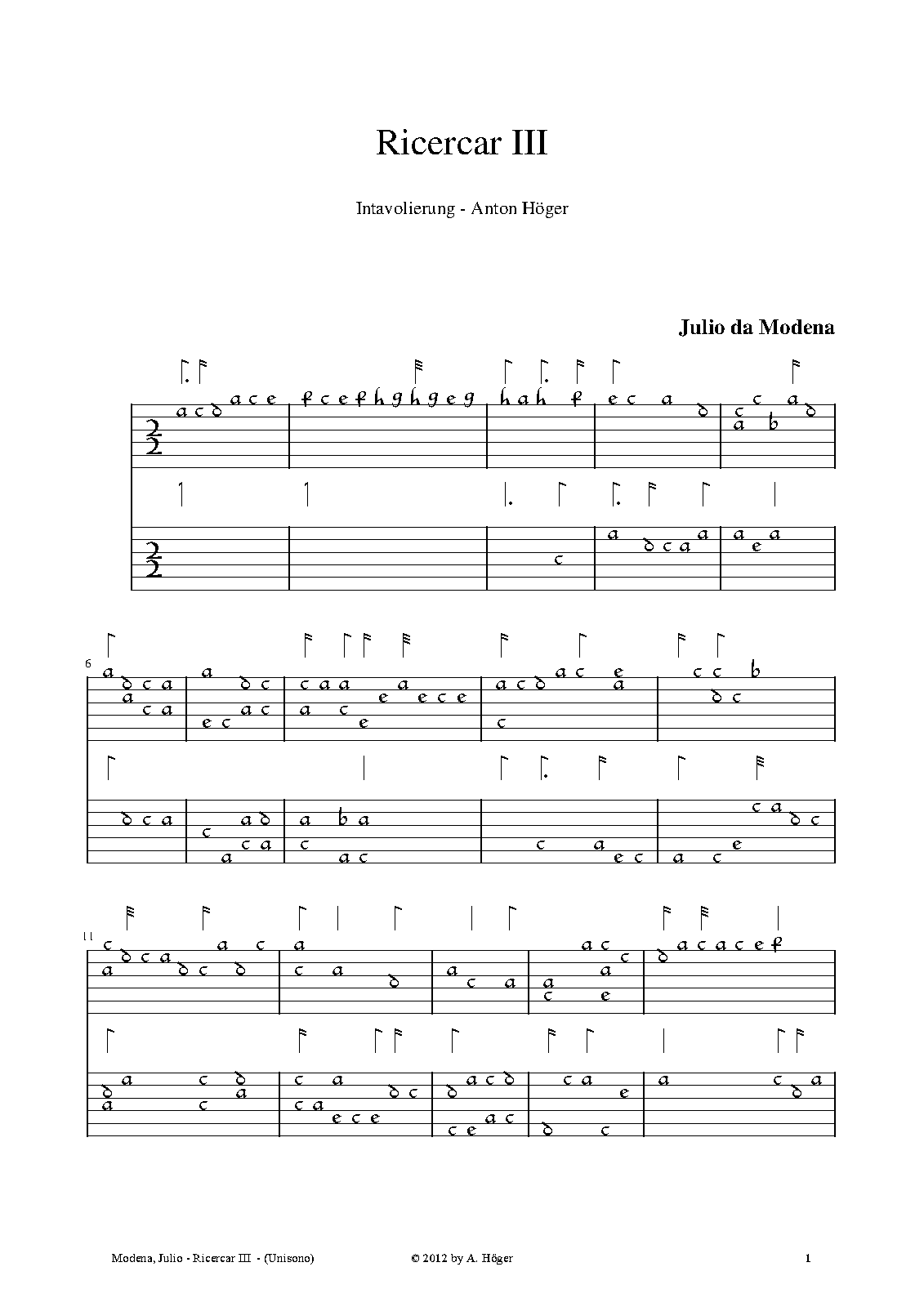 Intabulations in italian lute tablature. If performed I would look forward about a small reference to my efforts.