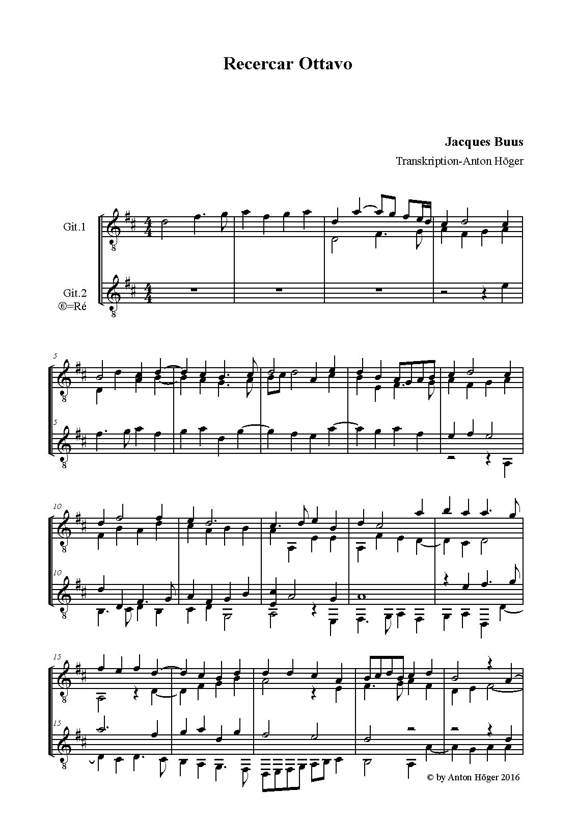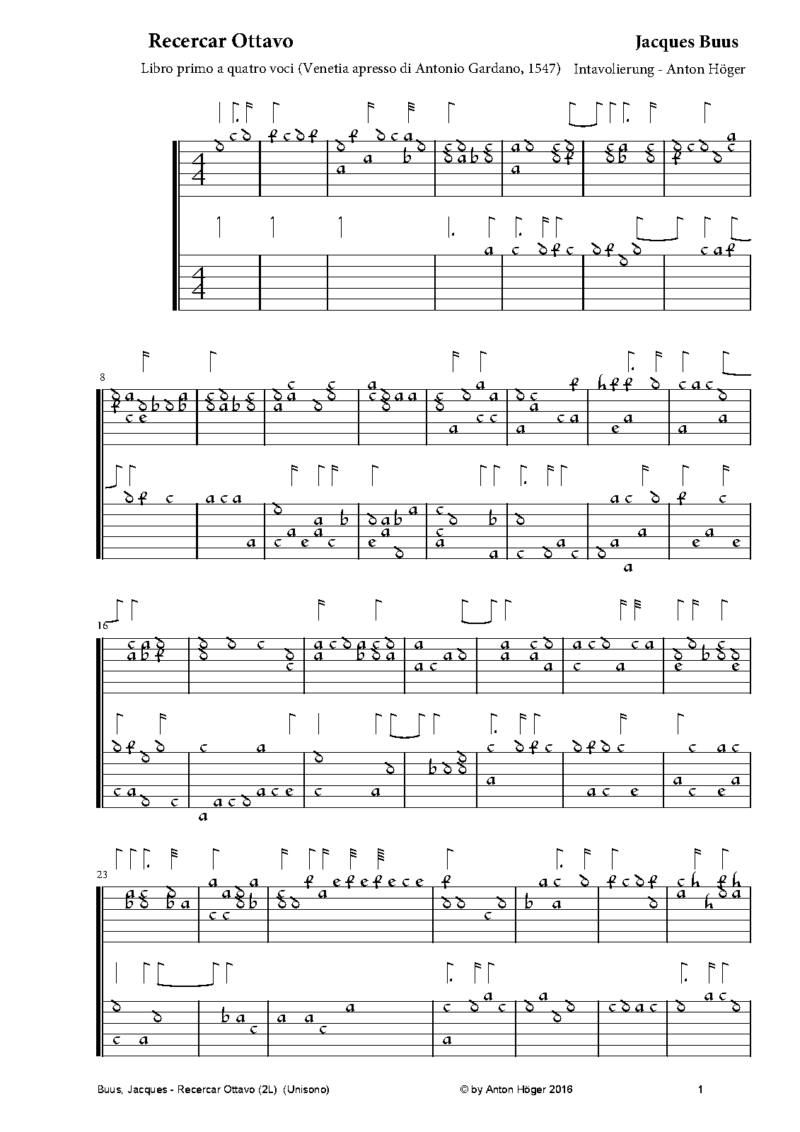 Intabulation in Lute-tablature for 2 lutes (Unisono). If performed I would look forward about a small reference to my efforts.