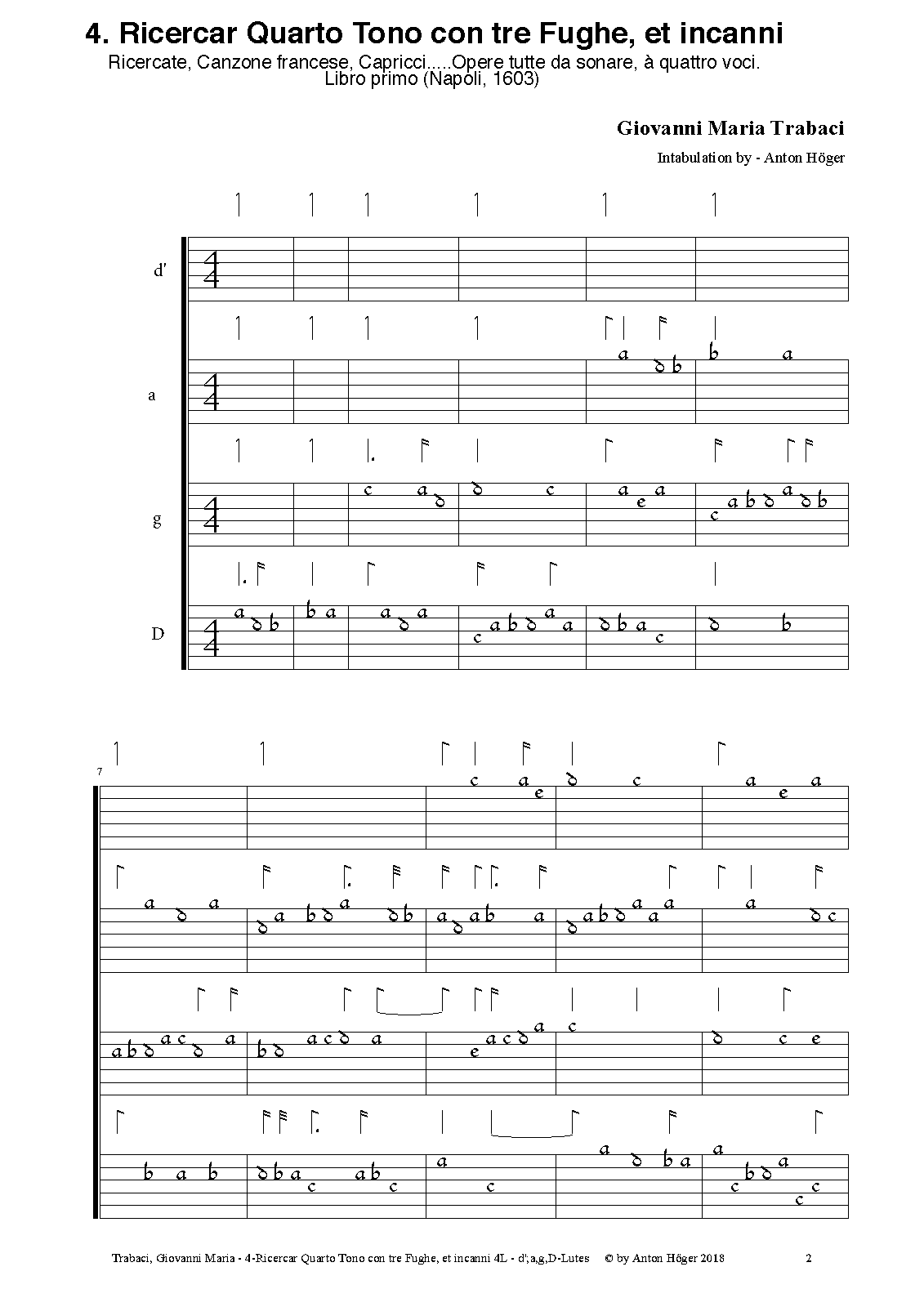 | First Publication | 1603 in Ricercate, & altri varij capricci, Libro 1 (Trabaci, Giovanni Maria), no.4 |