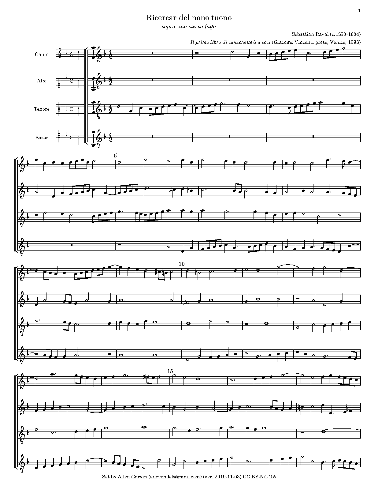 | Genre Categories | Ricercars; For treble, alto, tenor, bass instruments; Scores with open instrumentation; |