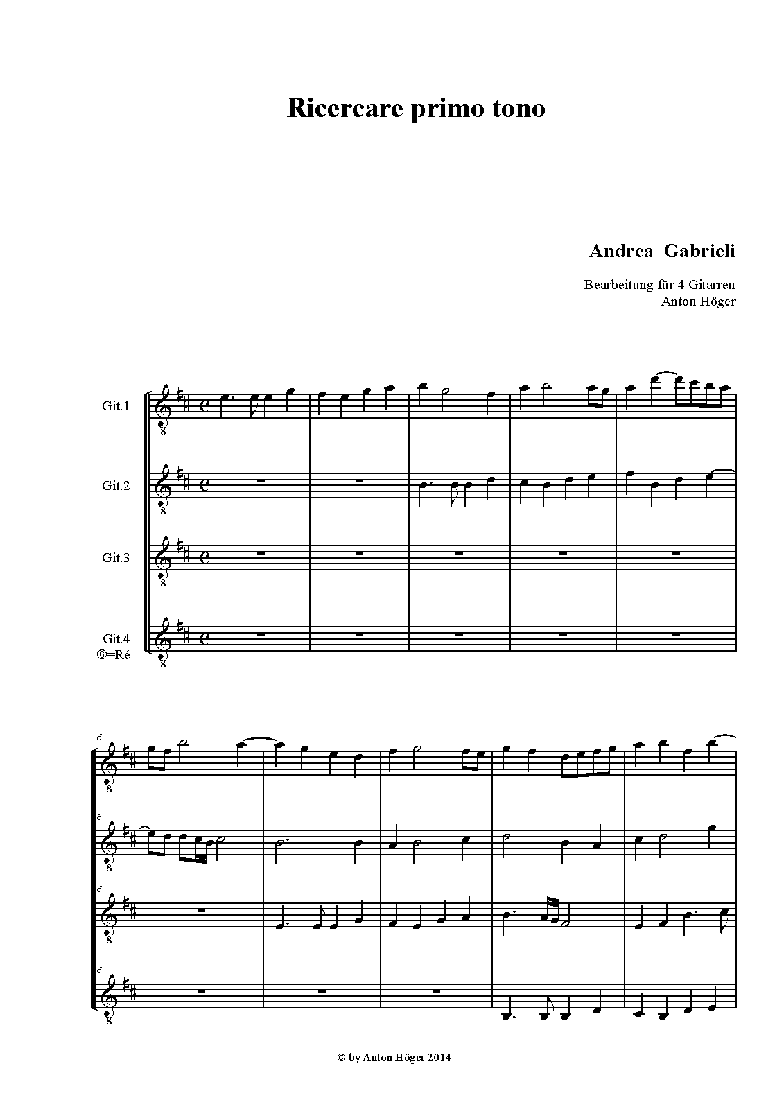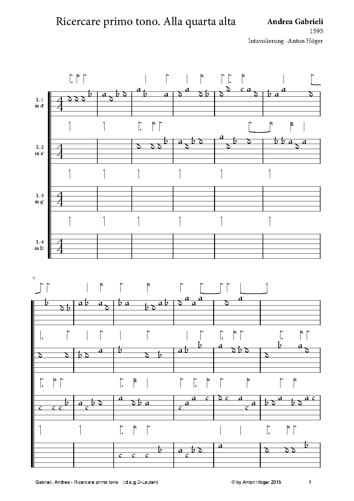 | Work Title | Ricercar del primo tono alla quarta alta |