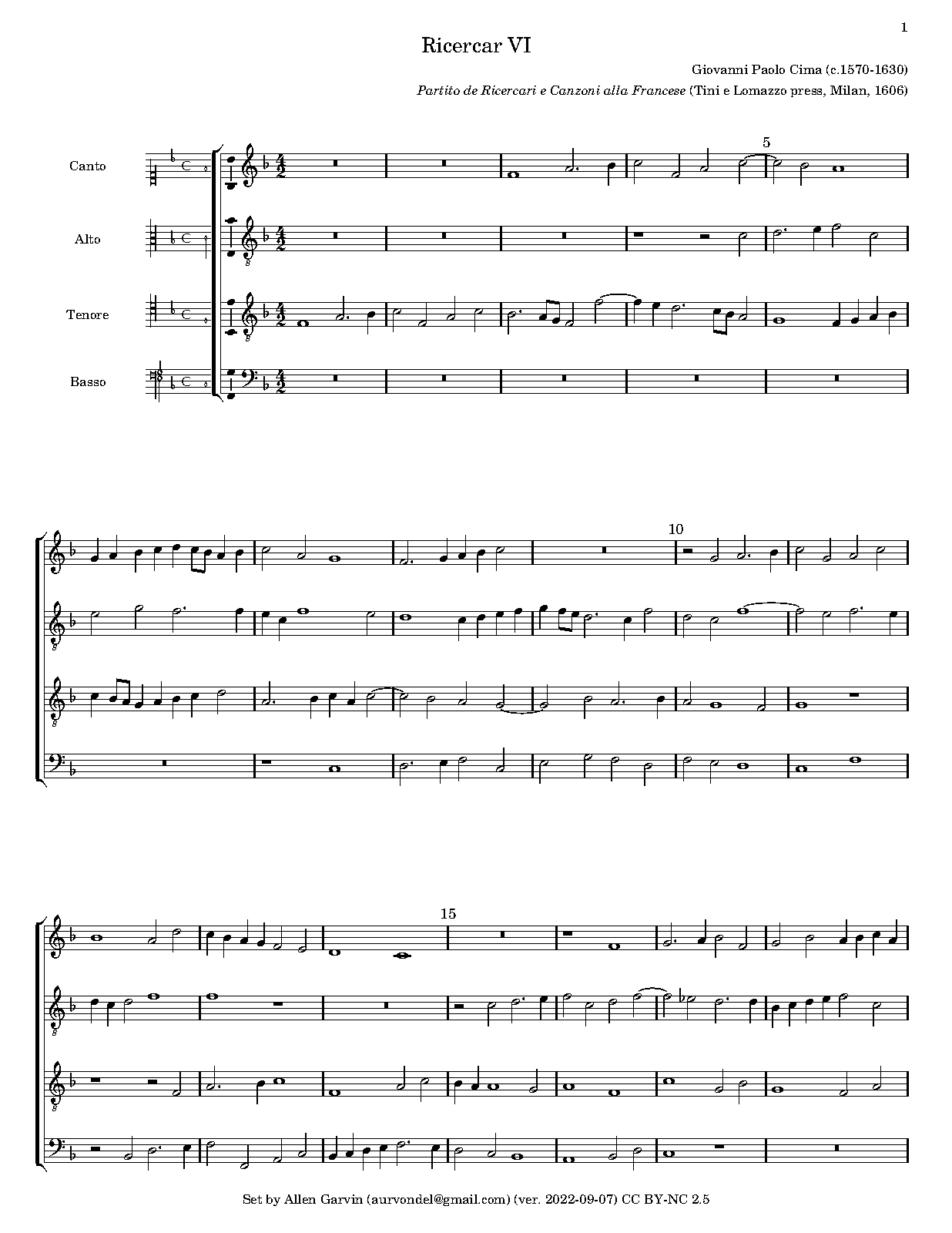 | First Publication | 1606 in Partito de Ricercari e Canzoni alla Francese |
