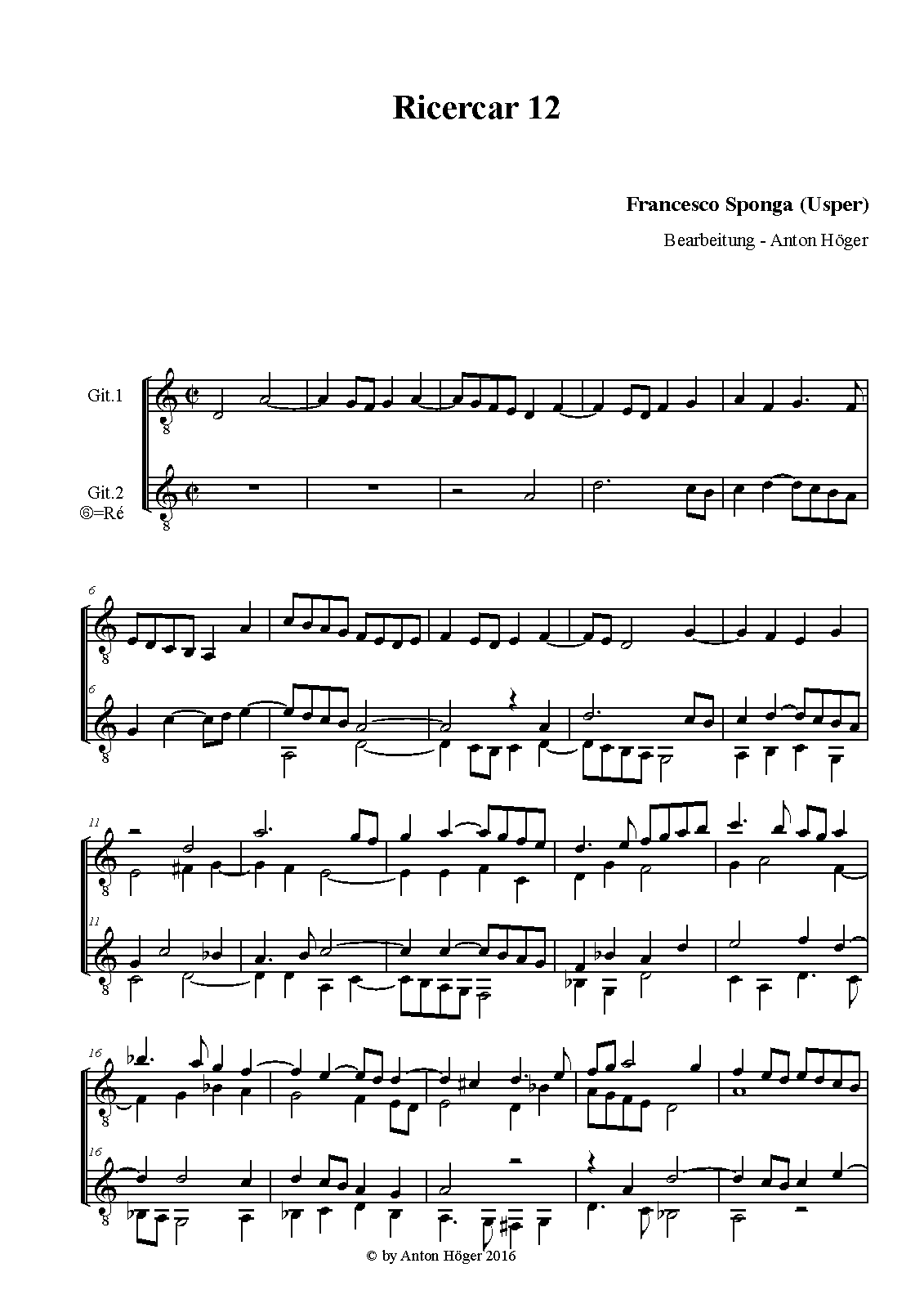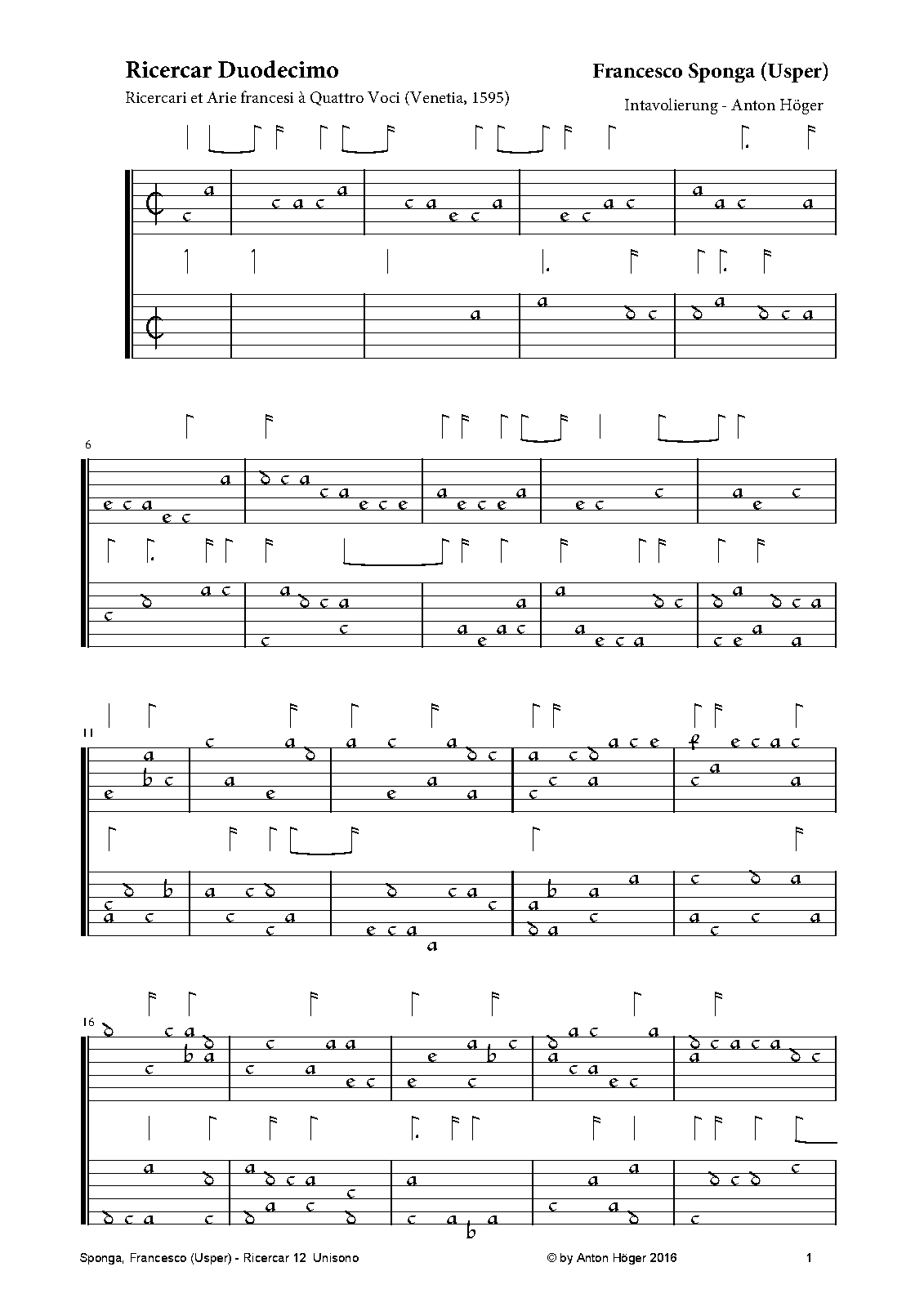 | First Publication | 1595 in Ricercari et arie francesi (No.12) |