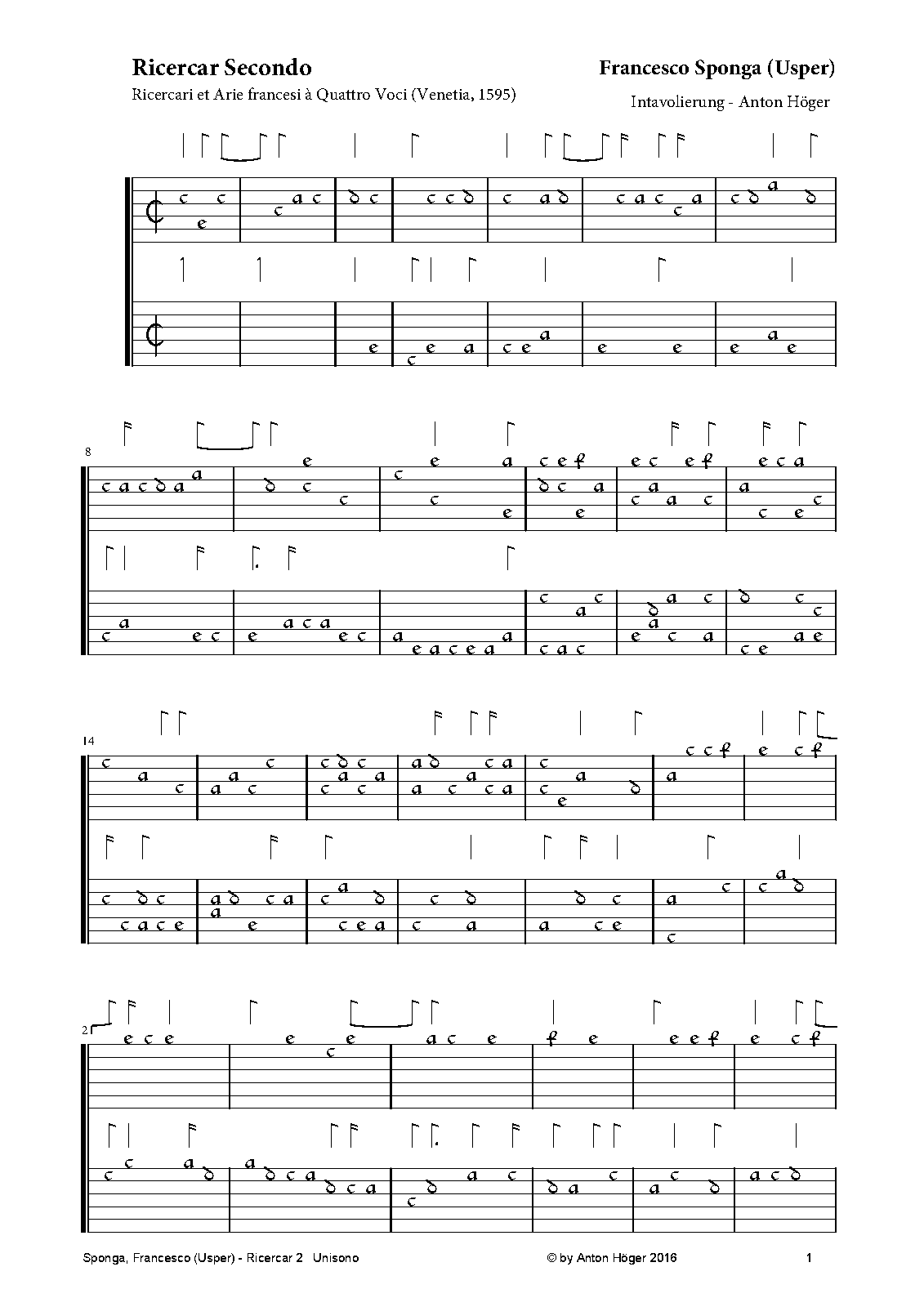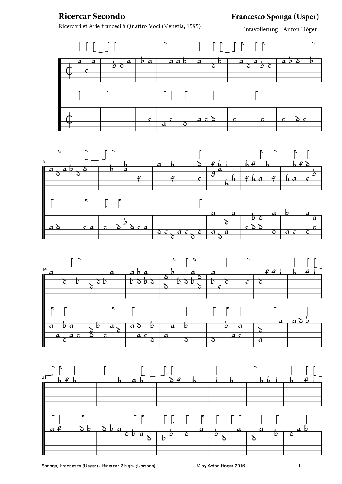 | Work Title | Ricercar Secondo |