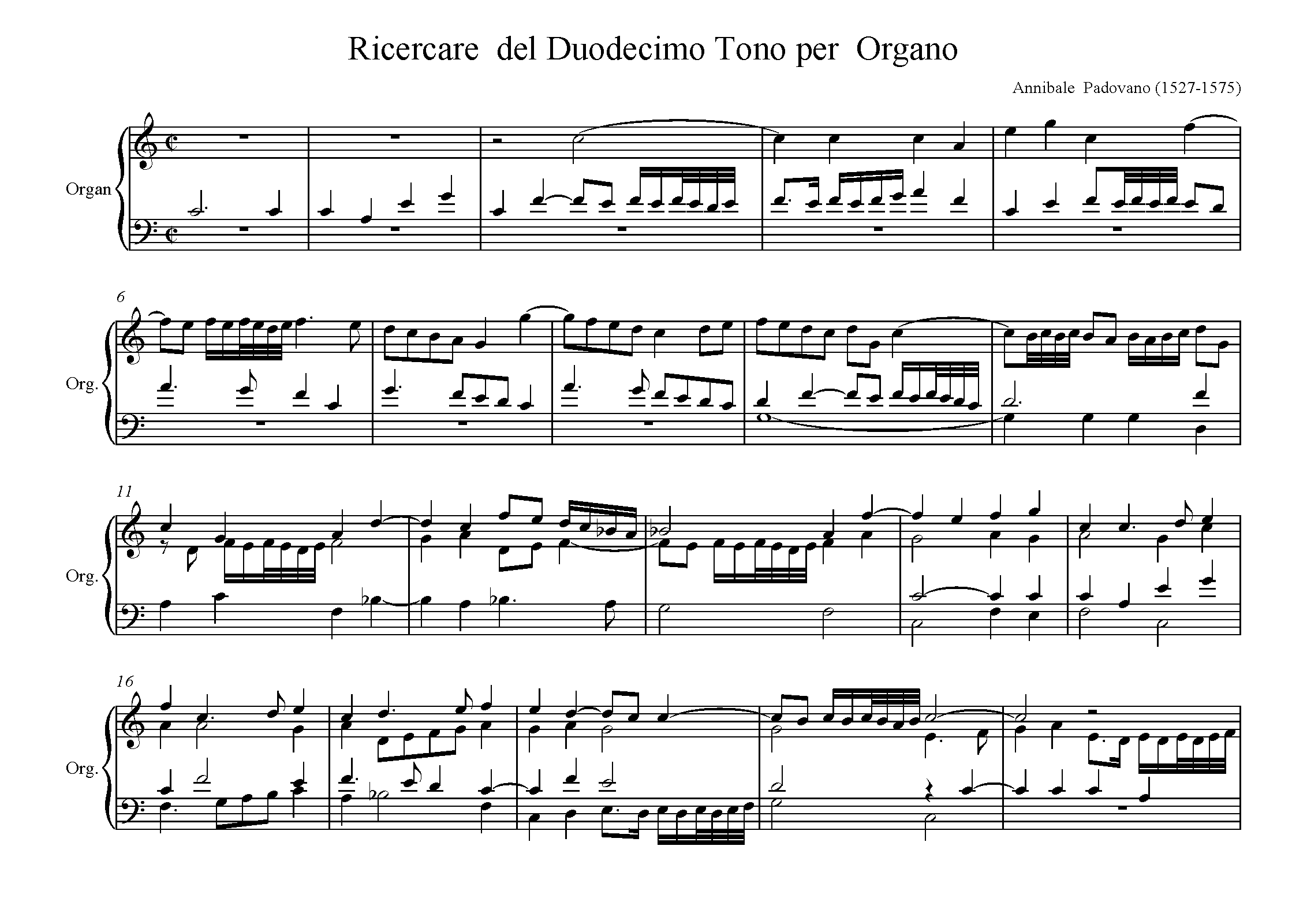 | Work Title | Ricercare del Duodecimo Tono per Organo |