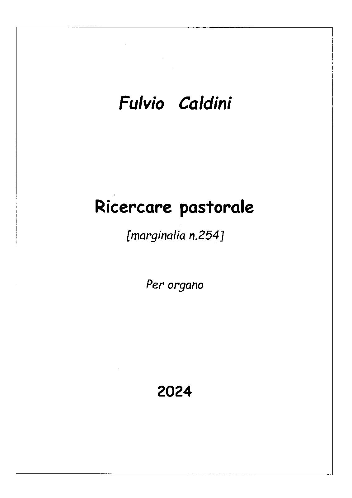 | Work Title | Ricercare pastorale, Marginalia No.254 |