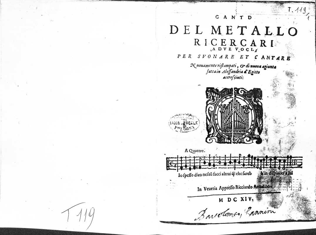 | Alternative. Title | Del Metallo Ricercari a due voci. Personare & Cantare |