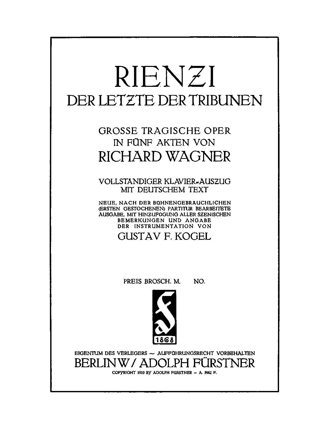 | Work Title | Rienzi, der Letzte der Tribunen |