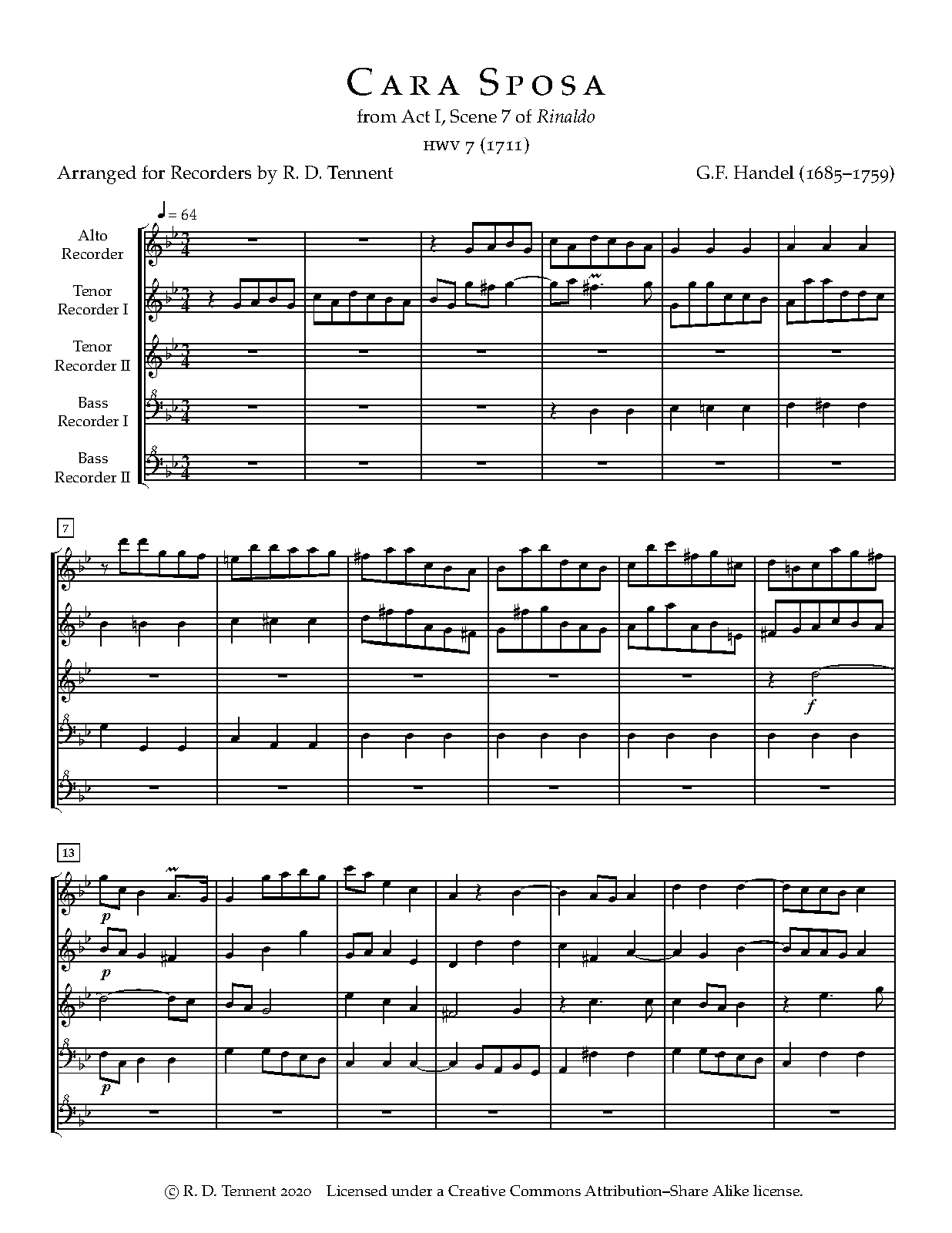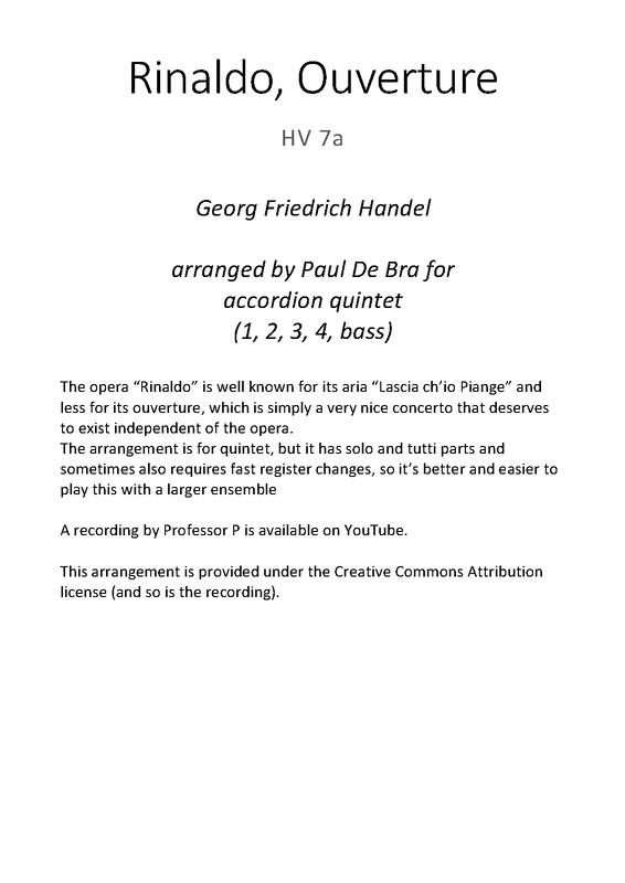| Opus/Catalogue NumberOp./Cat. No. | HWV 7a |