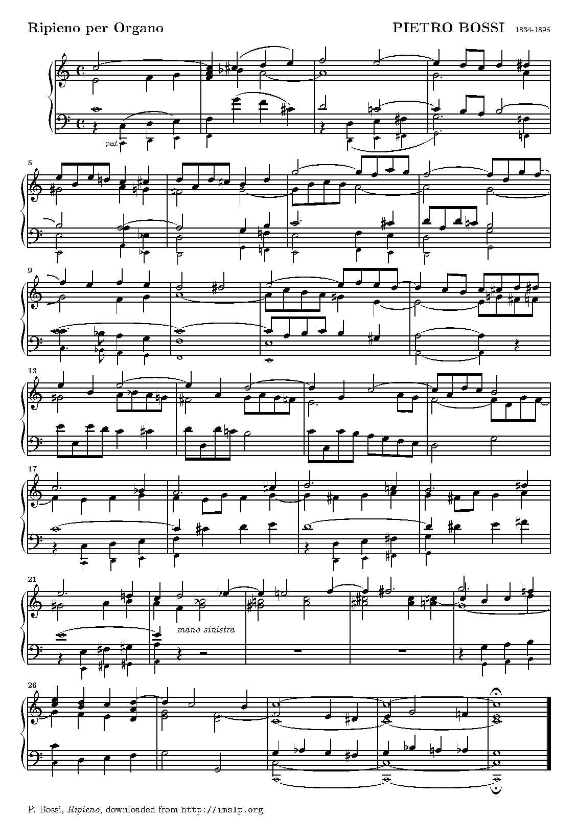 Misc. Notes Pedal part notated in "Italian mode", i.e. small notes in the l.h. staff