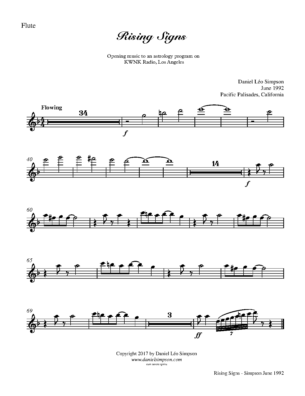 | Instrumentation | flute, oboe, horn, drums, glockenspiel, wind chime, synthesizer, bass synthesizer, strings |