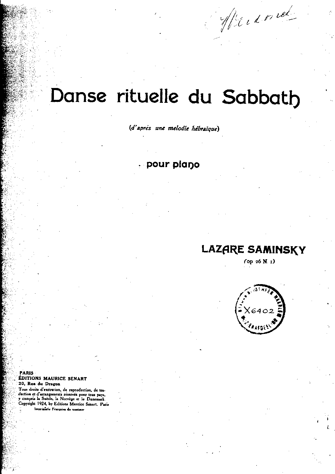 | Alternative. Title | Danse rituelle du Sabbath (d'après une melodie hébraïque) pour piano. |