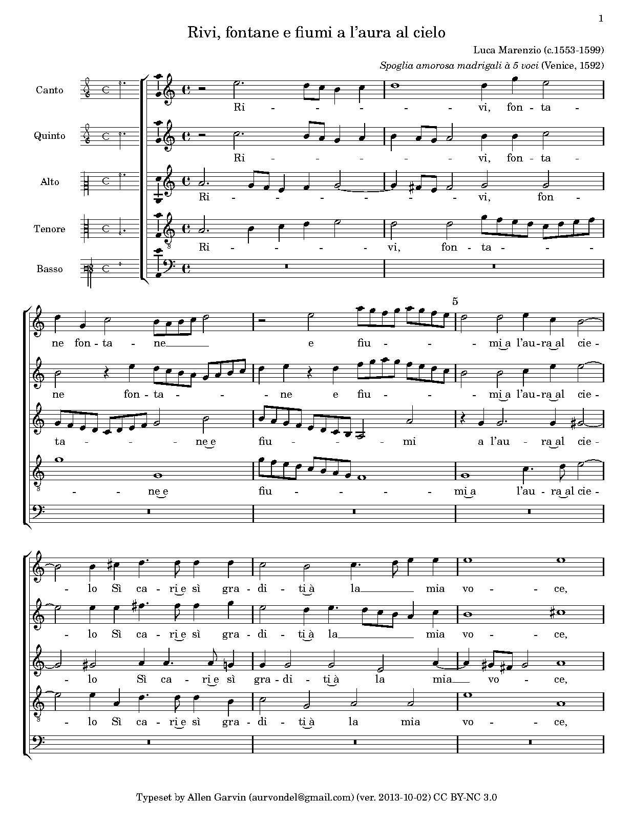 | First Publication | 1589 in Le gioie: madrigali a cinque voci di diversi. |