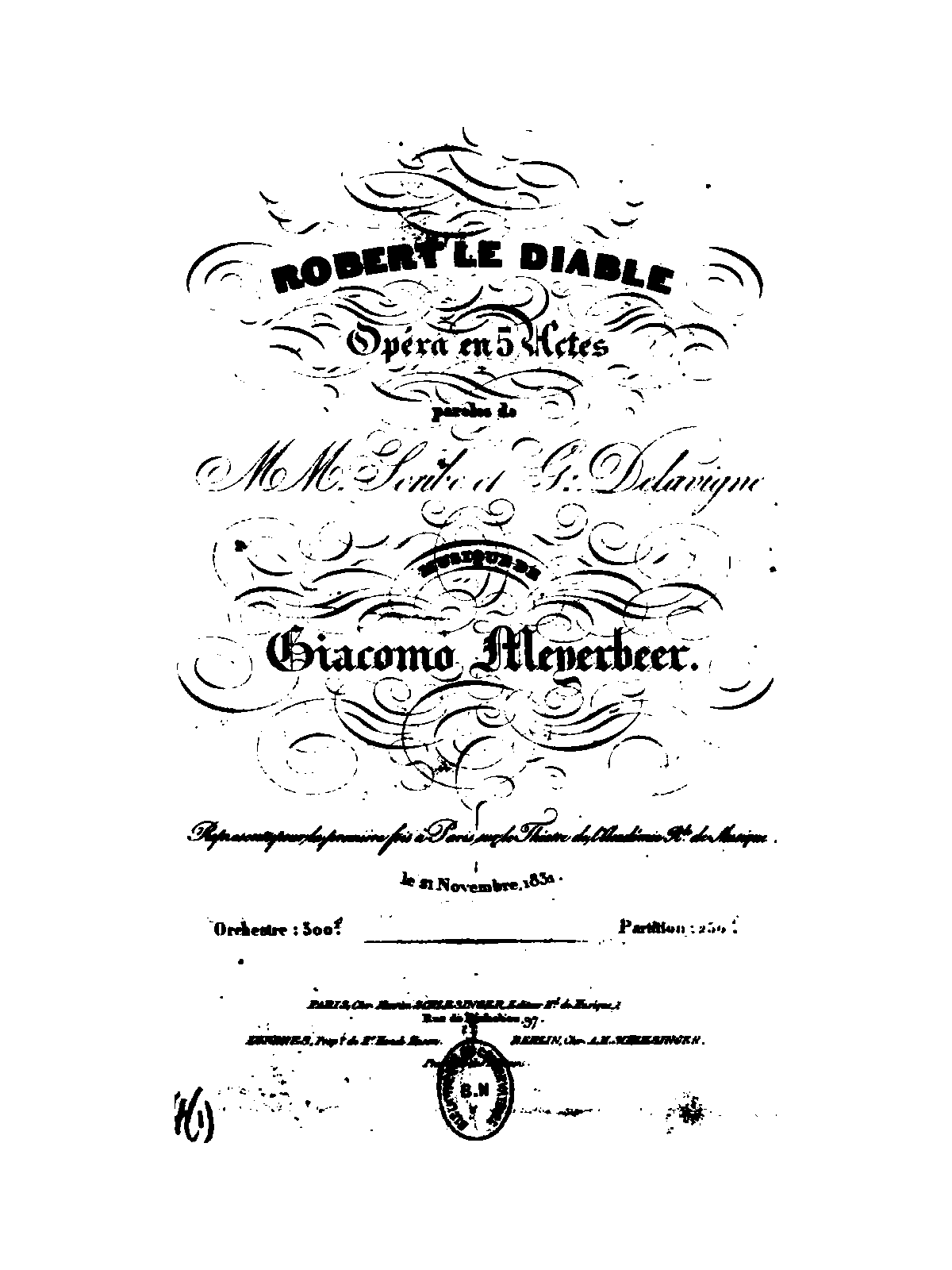 | First Performance. | 1831-11-21 in Paris: Opéra |