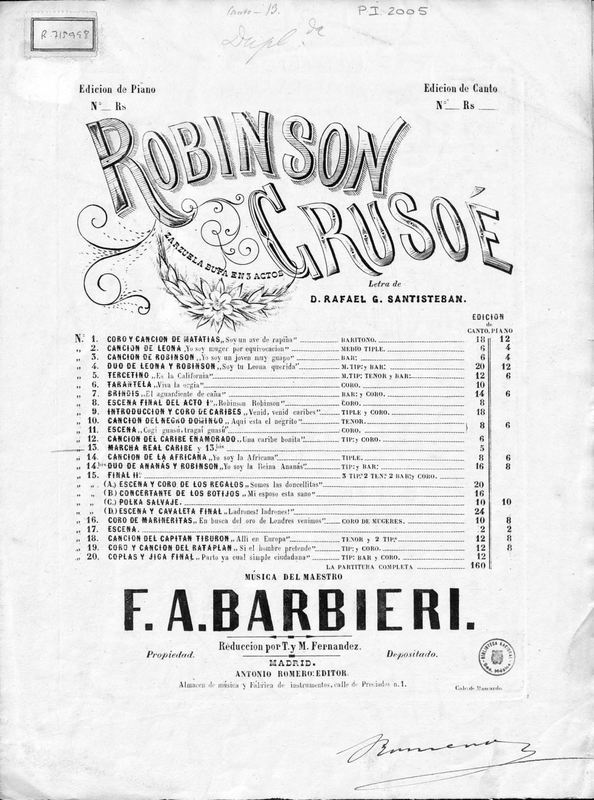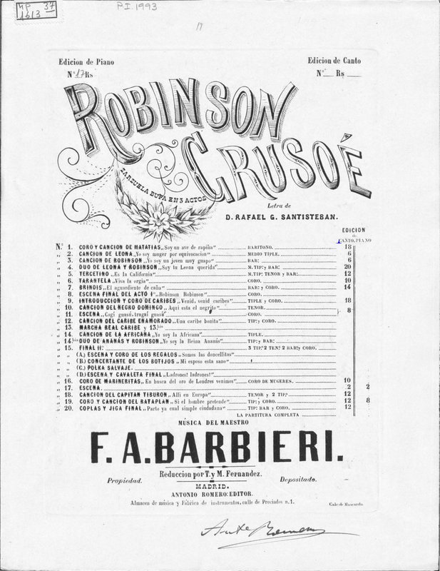 | Alternative. Title | Zarzuela bufa en tres actos y en prosa |