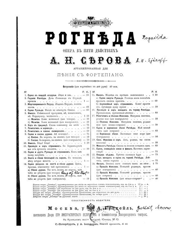 | First Publication. | St. Petersburg: F. Stellovsky, 1866 (vocal score) |