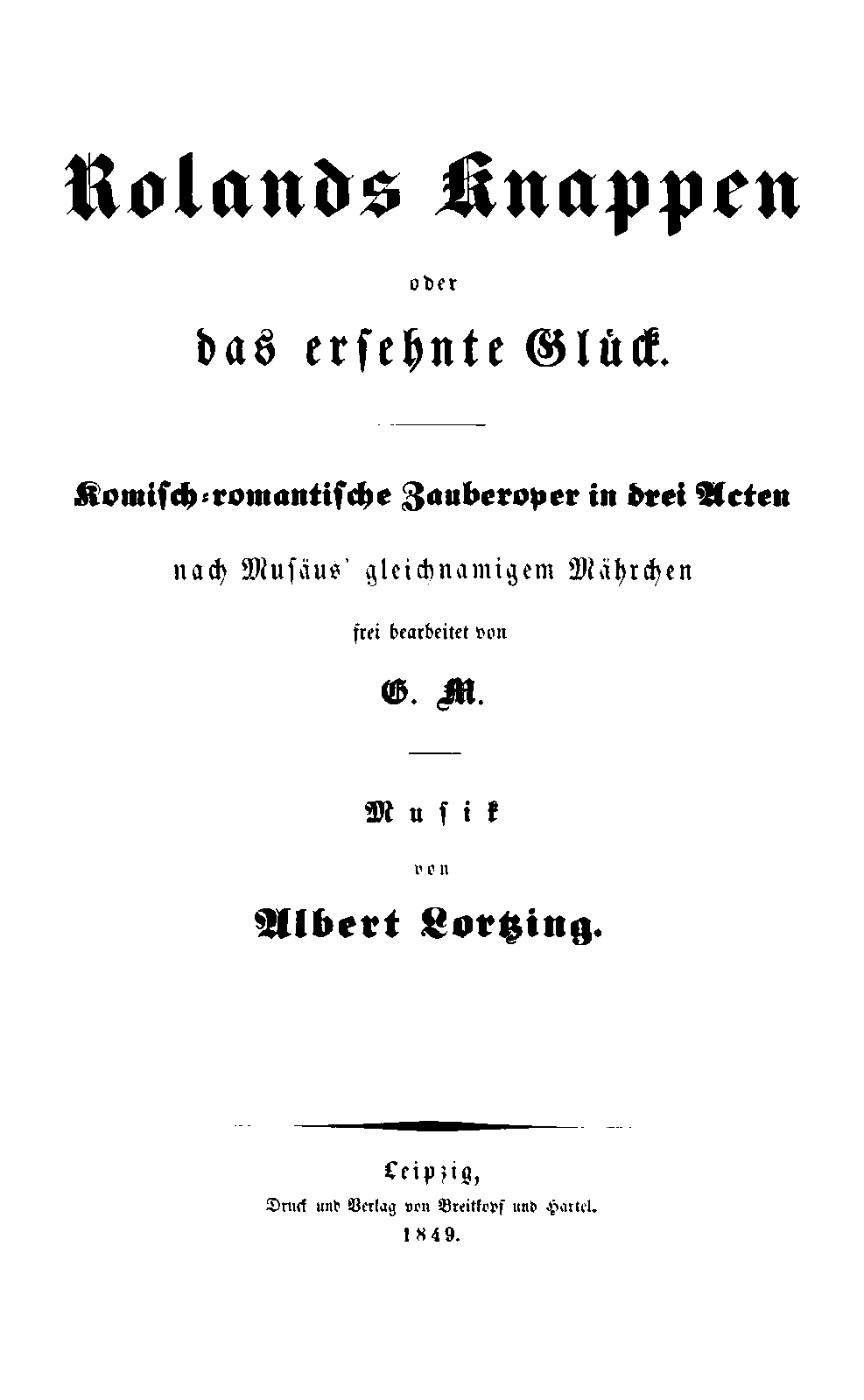 | Alternative. Title | Rolands Knappen, oder Das ersehnte Glück; Märchenoper in drei Aufzügen |