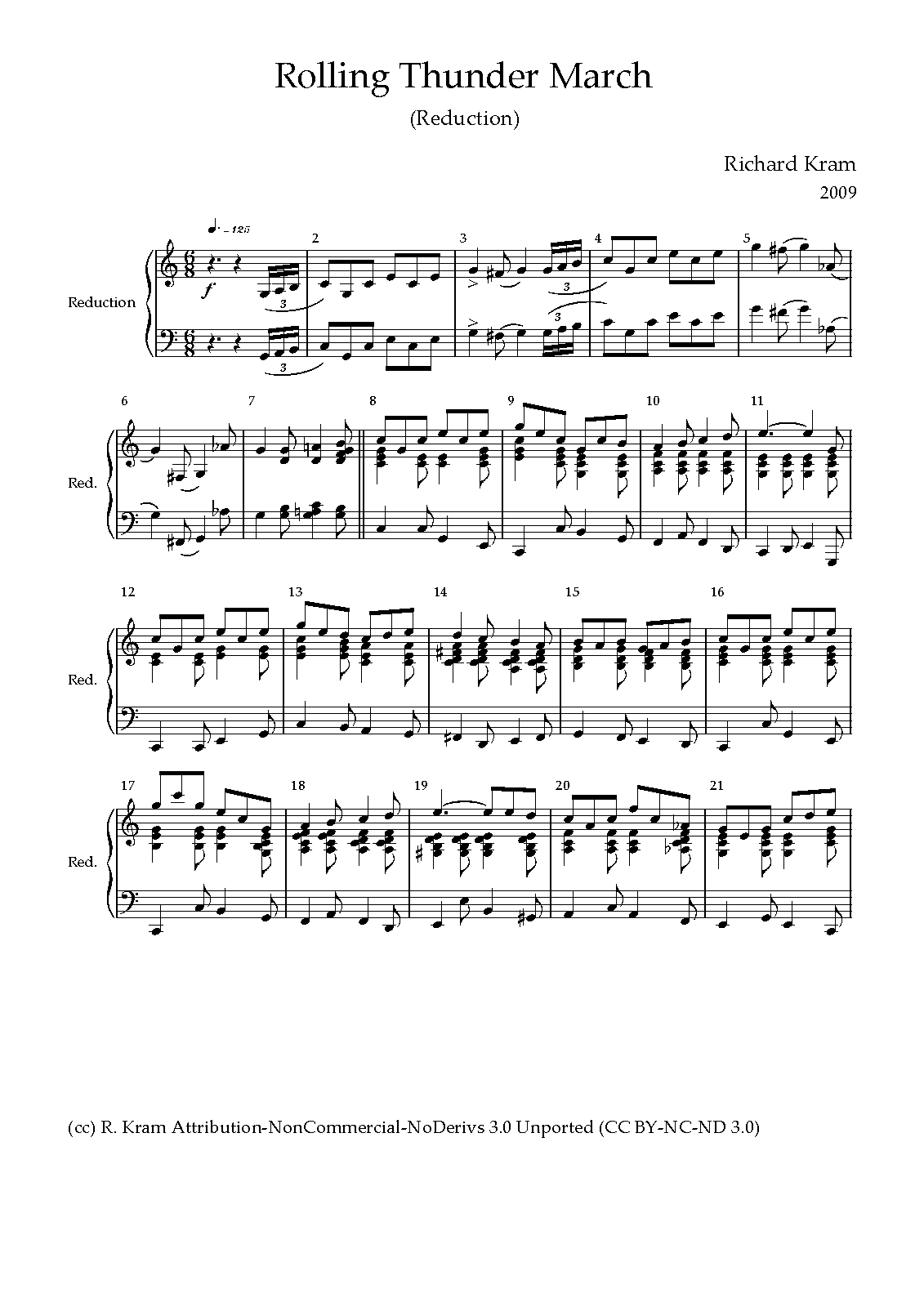 This is a reject for a March I've been trying to write for a friend in the Army. It has more a Naval sound to my ear. A bit too stereotypical too. I've posted the band reduction, which is not really playable unless you split it up between two players. Maybe I'll create a four hand version one day.