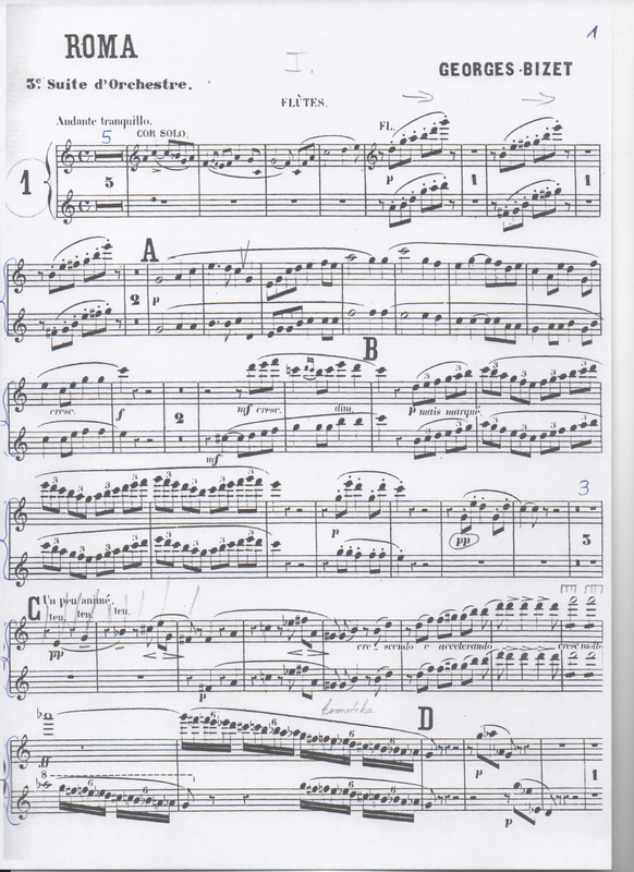 *Bizet made some minor revisions after the 1869 concert, which were most likely incorporated in the first edition(s) issued in 1880, which coincided with the first complete performance (Oct. 31, 1880) given at the Concerts populaires under Paseldoup.