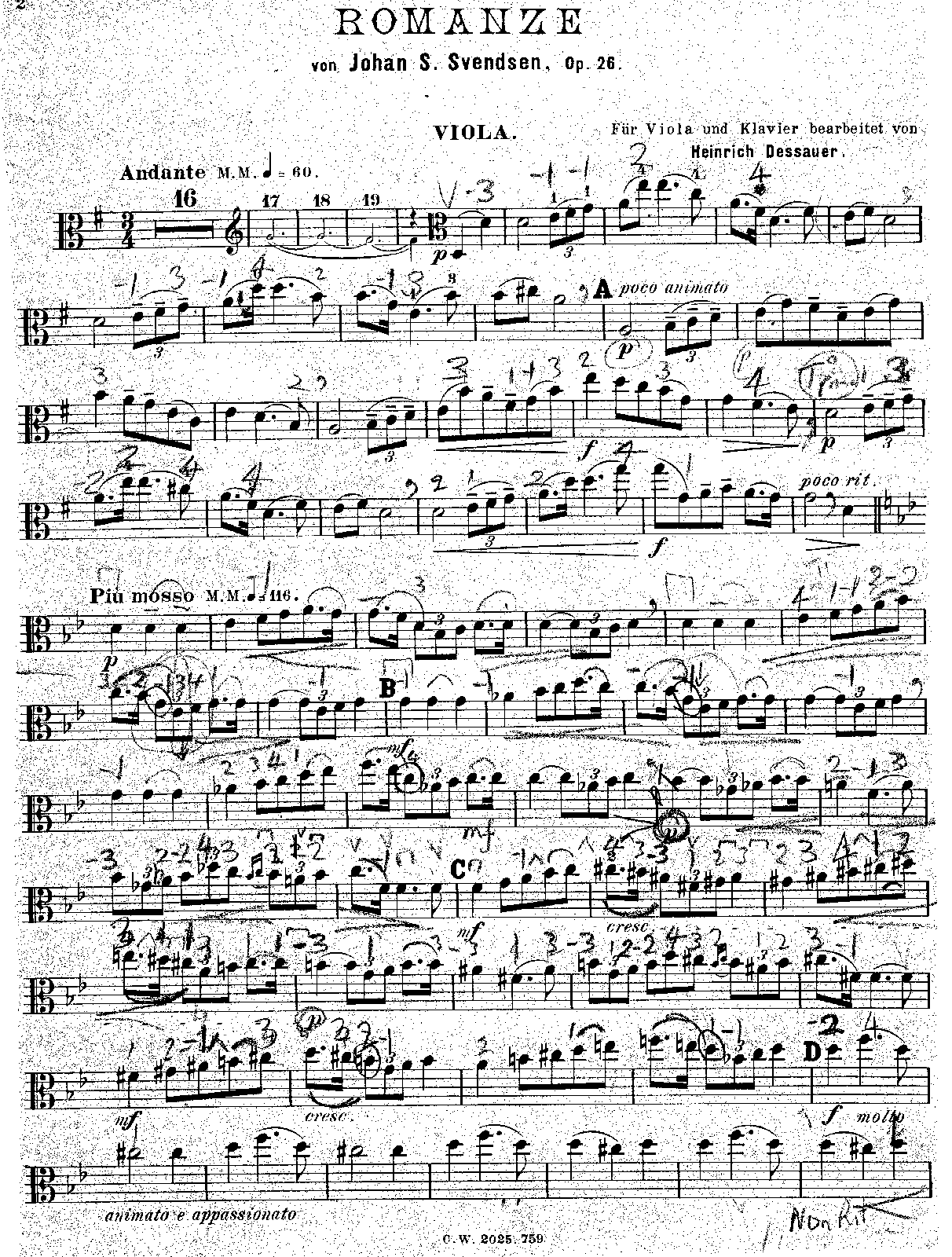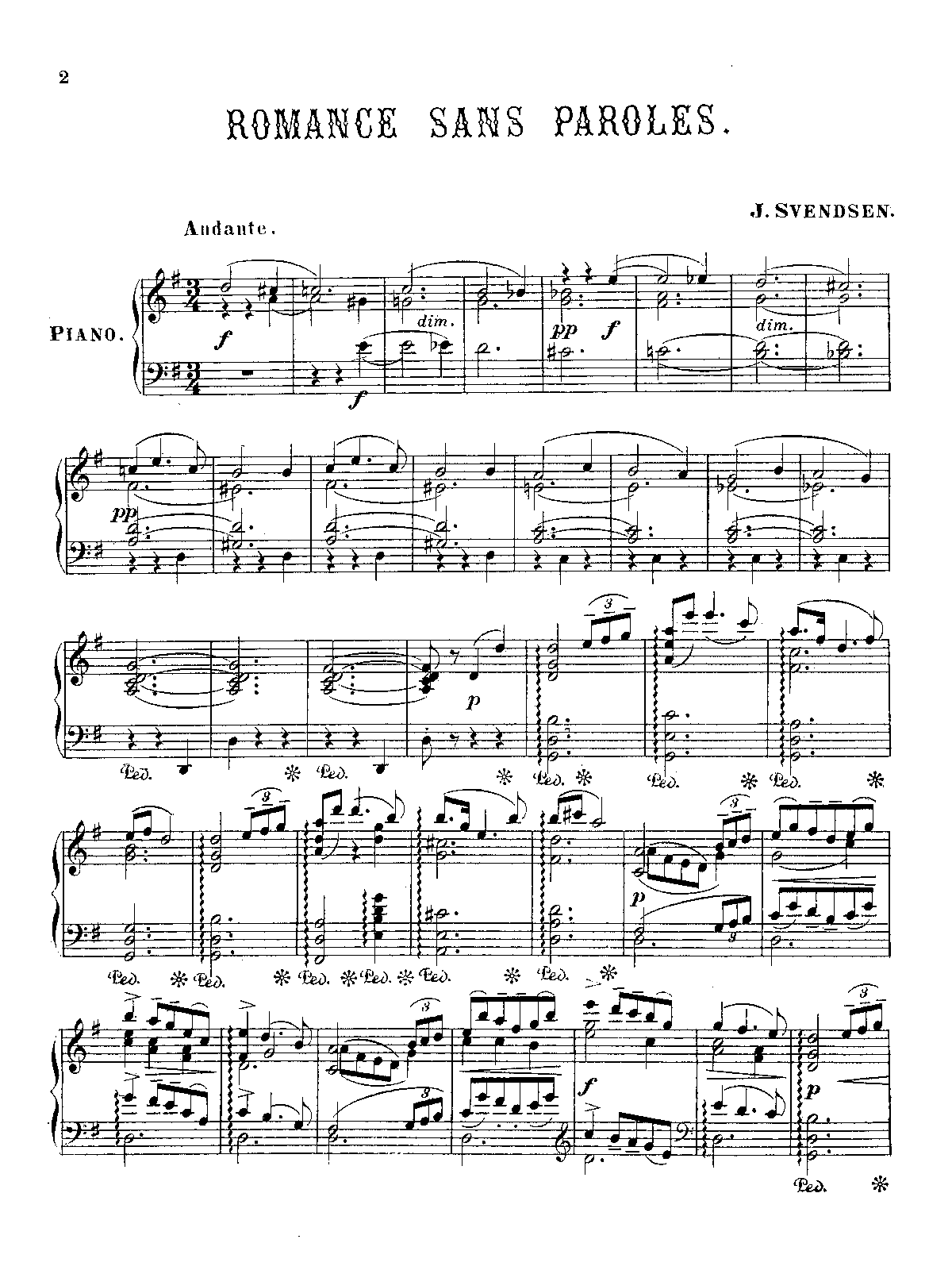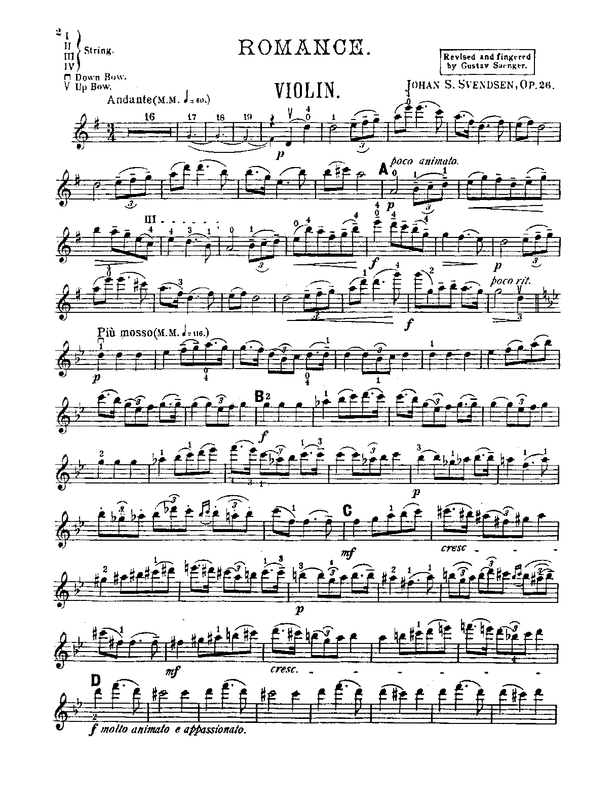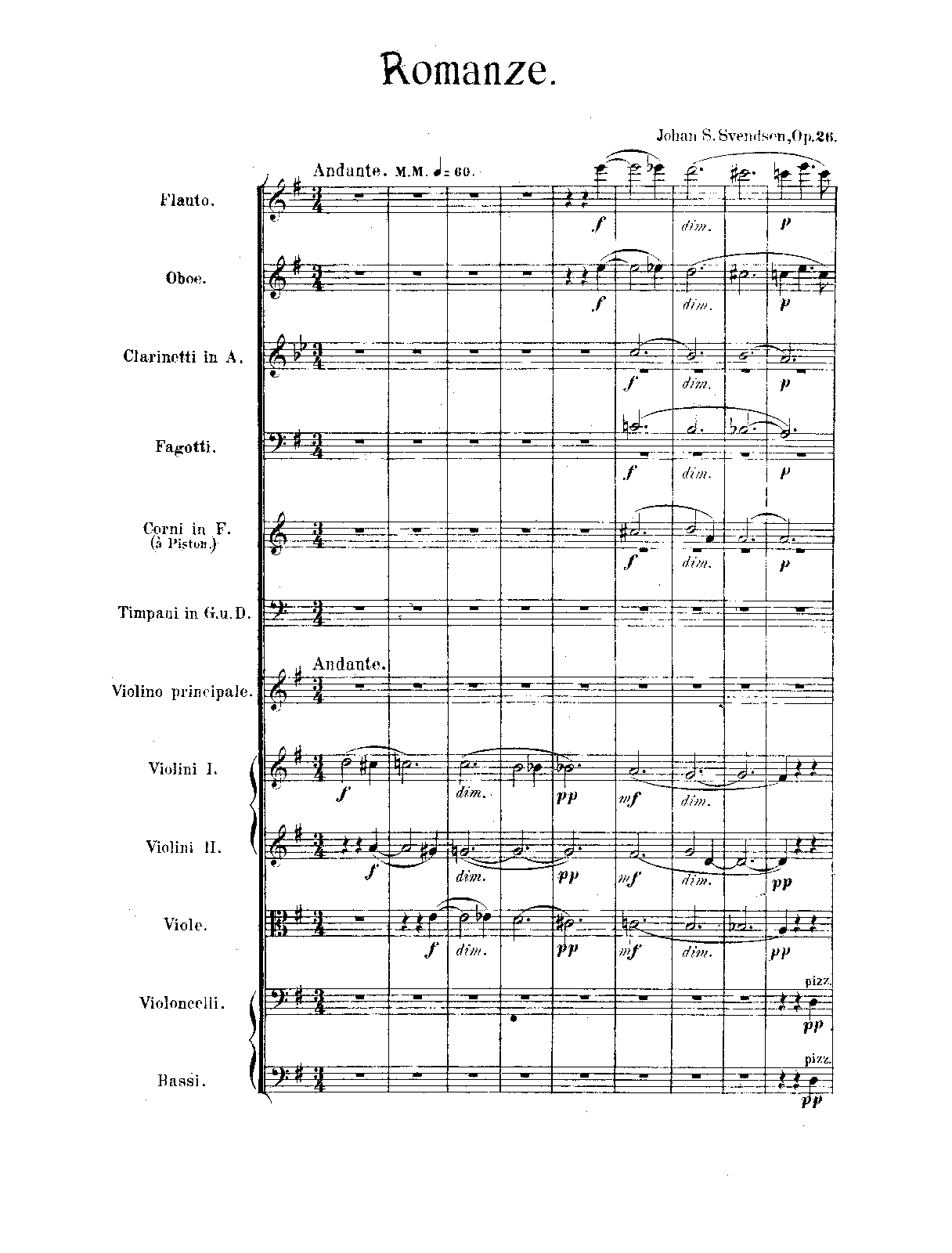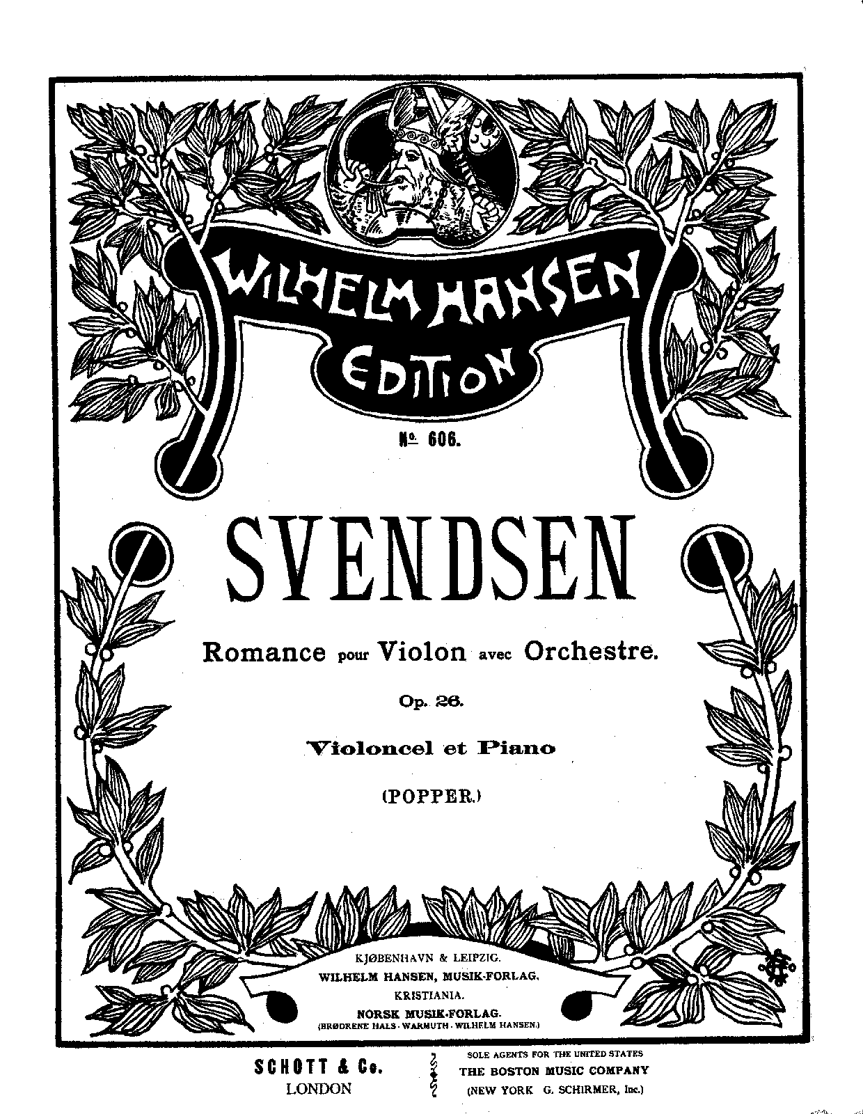| Extra Information | In the autumn of 1881, Svendsen was invited by his publisher, Carl Warmuth, to compose a romance – and completed it in two days. It was first published on 30 October 1881. Little did he imagine that it would become his most popular work, and arguably one of the most popular works in the romantic repertoire. The piece appeared in almost 70 printed editions in his lifetime. The composer also arranged the work for violin and piano. Publication History |