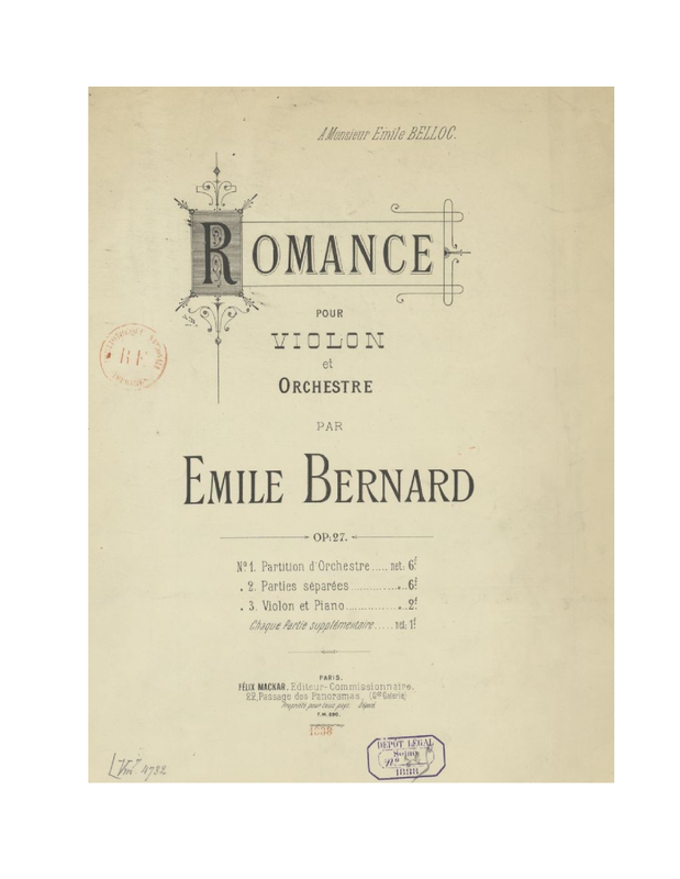| Genre Categories | Romances; For violin, orchestra; Scores featuring the violin; |