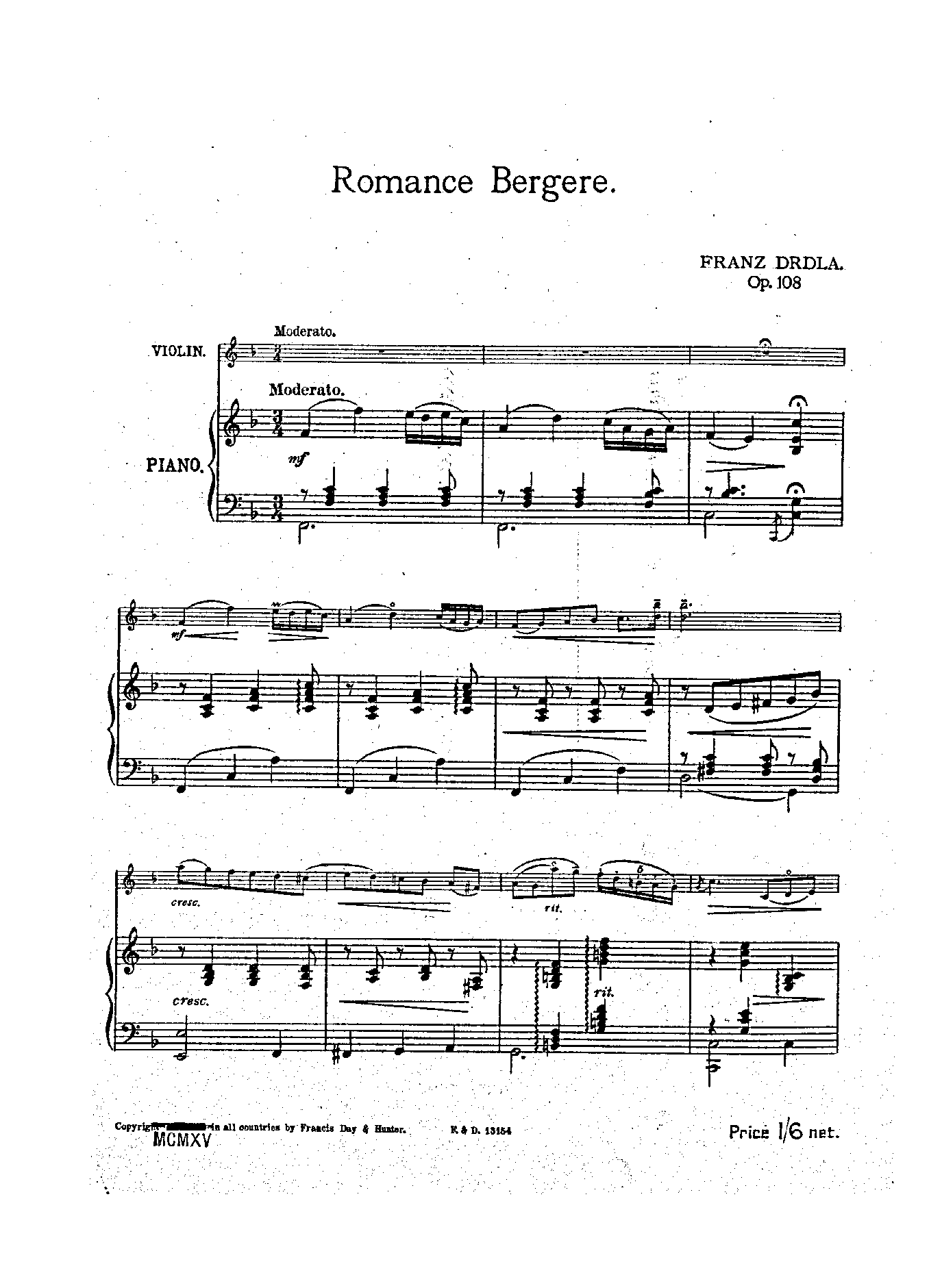 | Genre Categories | Romances; For violin, piano; Scores featuring the violin; |