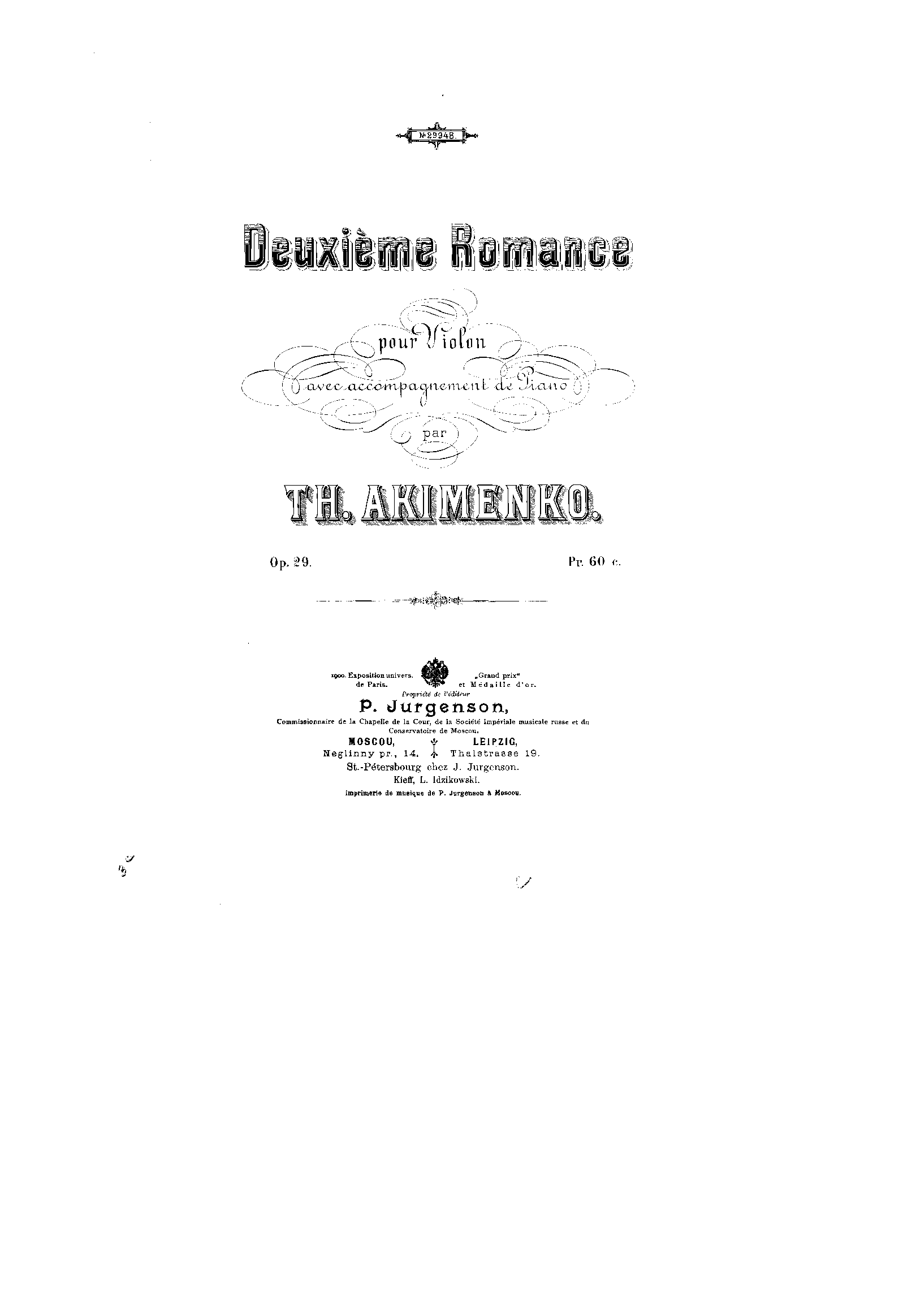 | Alternative. Title | Deuxième Romance pour violon avec accompagnement de piano |