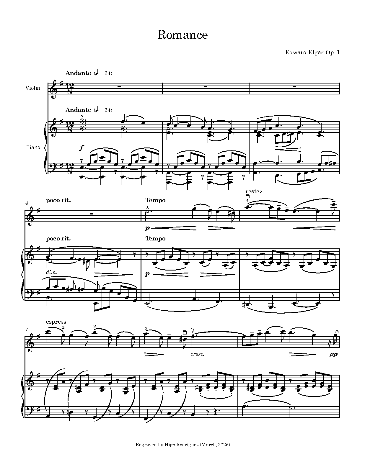 | Genre Categories | Romances; For violin, piano; Scores featuring the violin; |