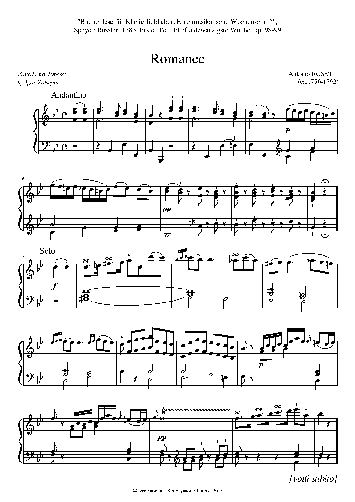 | Extra Information | "Blumenlese für Klavierliebhaber...", Speyer: Bossler, 1783 |