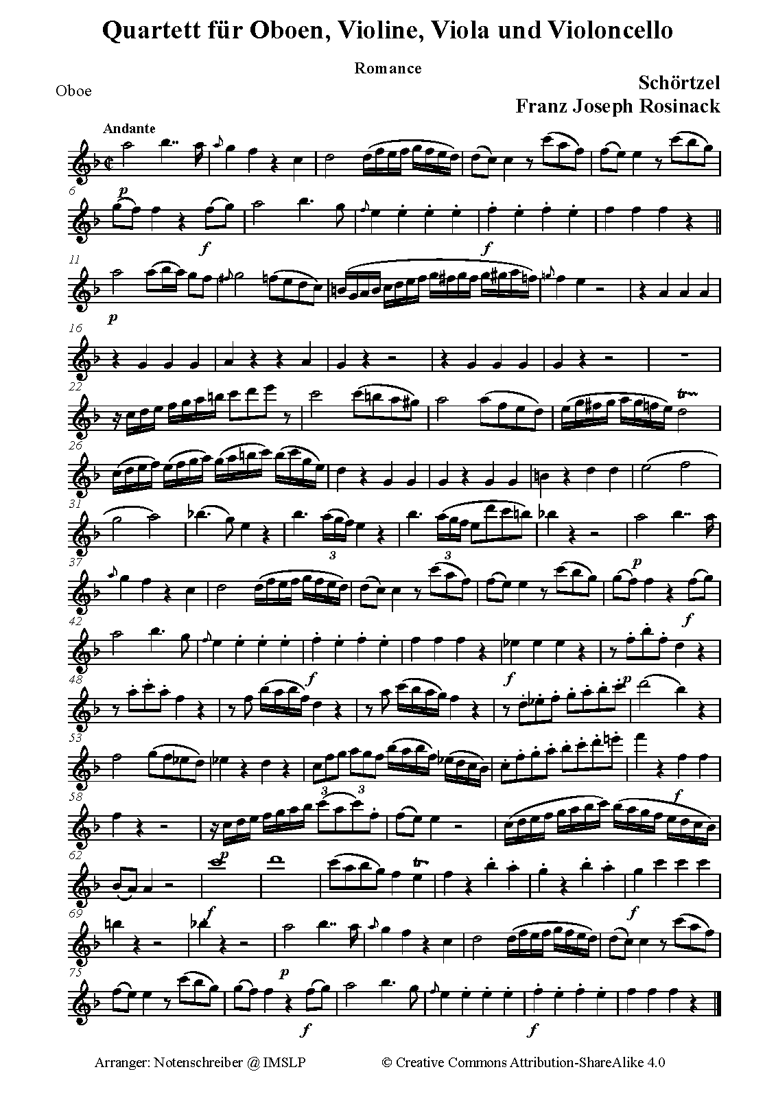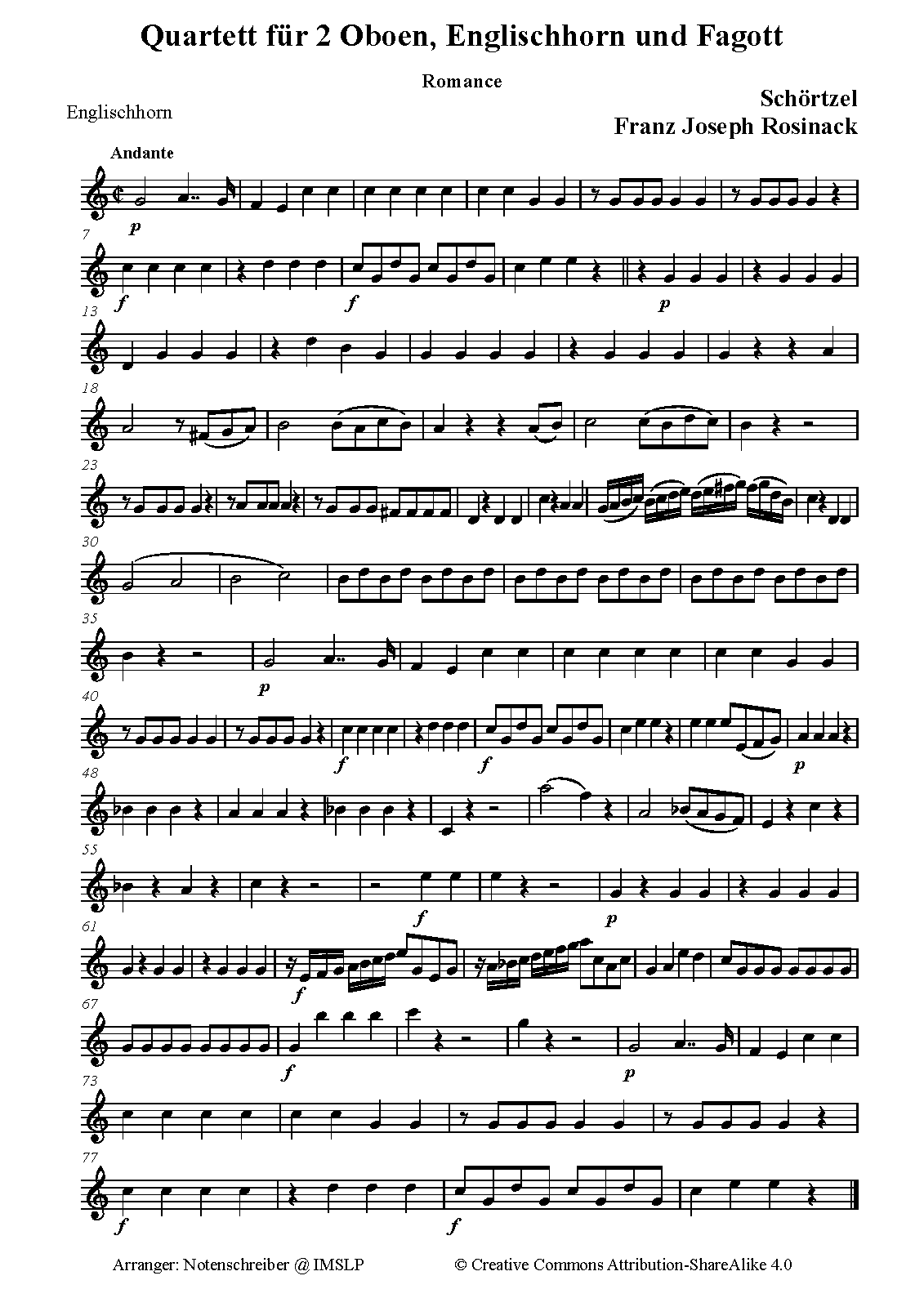 | Genre Categories | Romances; Works with undetermined instrumentation; For 2 oboes, English horn, bassoon (arr); |